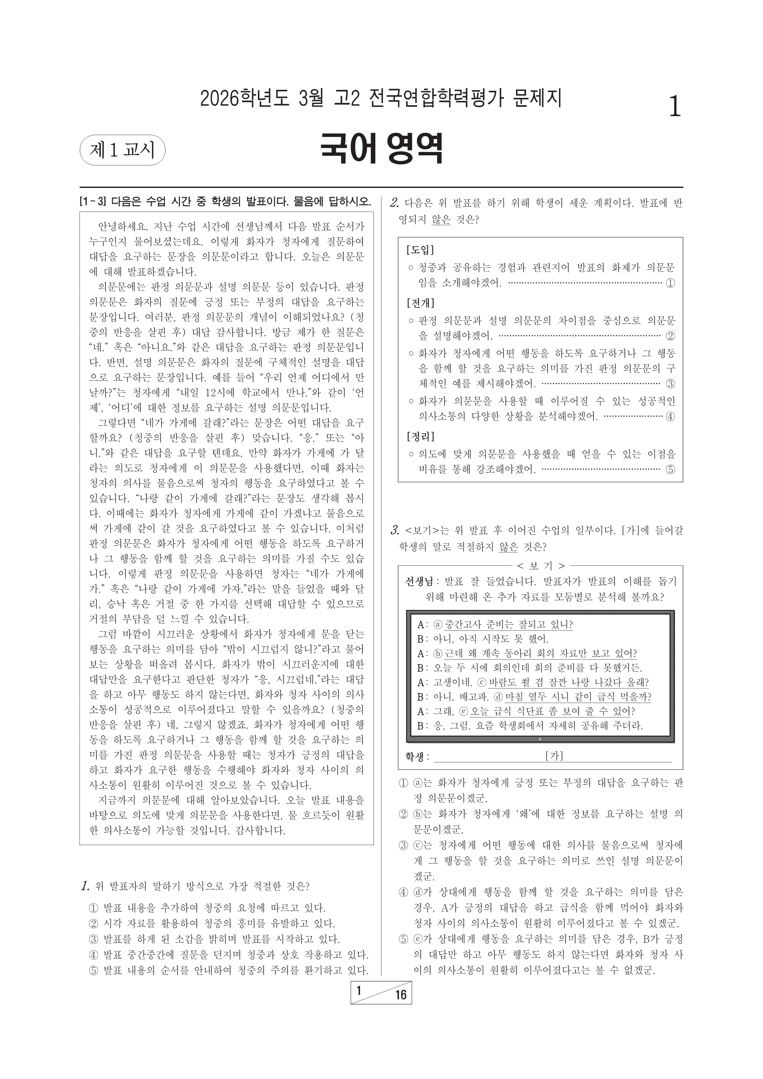 2026-03 고2 학평 영어 2026학년도 3월 고2 전국연합학력평가 영어시행 : 2026.03.24(화) 대상 : 고등학교 2학년출제 : 서울교육청 고2/영어 2026.03.25