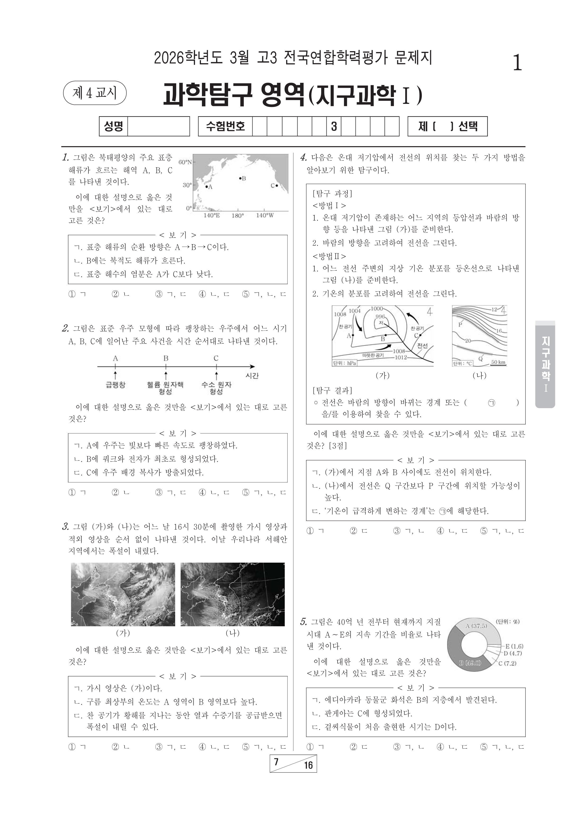 2026-03 고3 학평 과학(지구과학Ⅰ) 2026학년도 3월 고3 전국연합학력평가 과학(지구과학Ⅰ)시행 : 2026.03.24(화) 대상 : 고등학교 3학년출제 : 서울교육청 고3/과학 2026.03.24