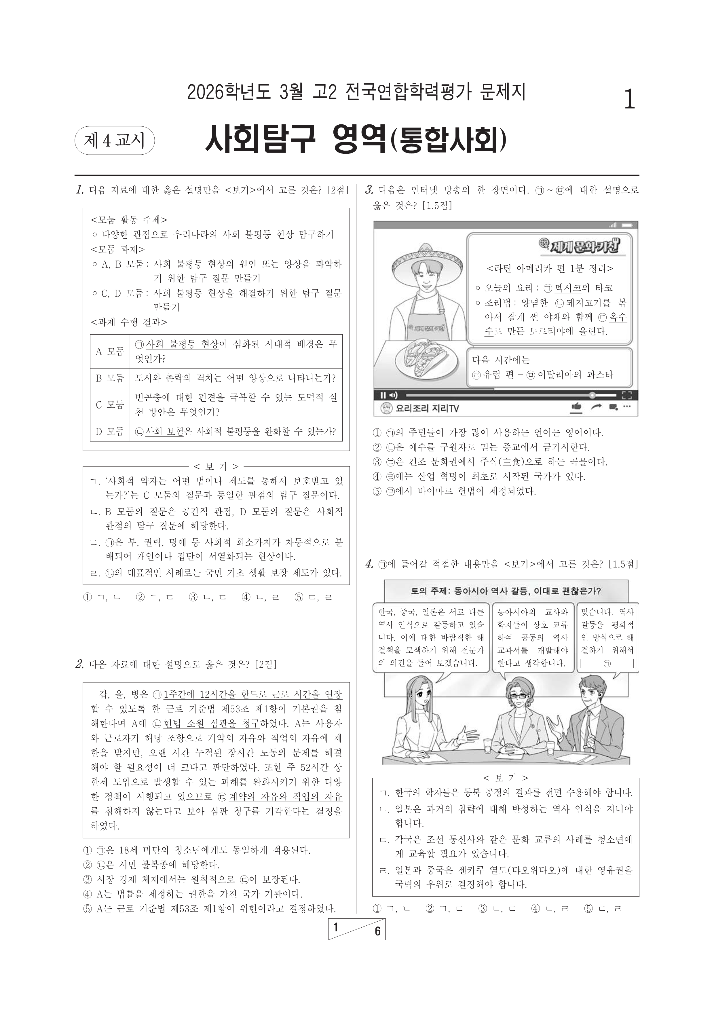 2026-03 고2 학평 통합사회 2026학년도 3월 고2 전국연합학력평가 통합사회시행 : 2026.03.24(화) 대상 : 고등학교 2학년출제 : 서울교육청 고2/사회 2026.03.25