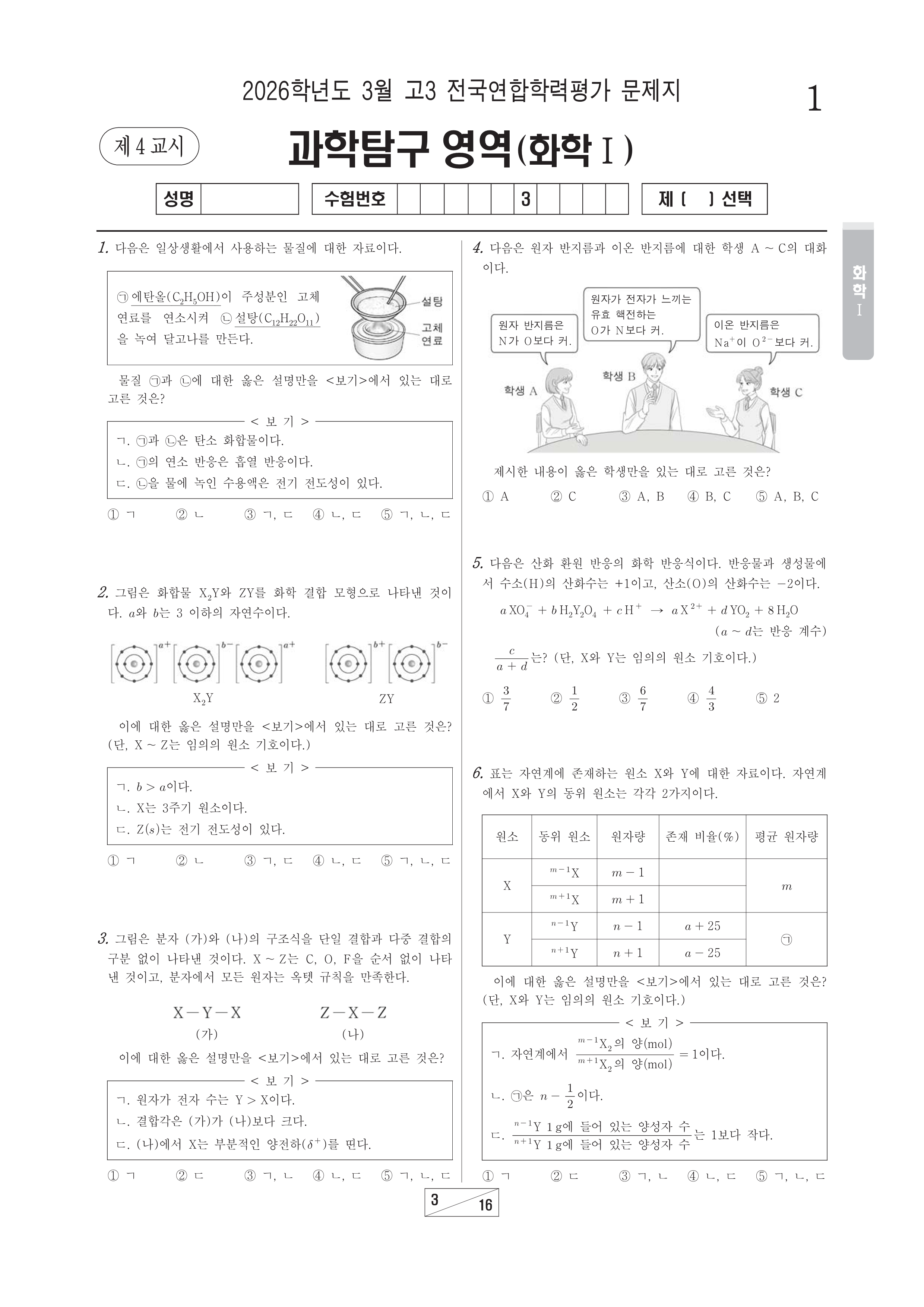 2026-03 고3 학평 과학(화학Ⅰ) 2026학년도 3월 고3 전국연합학력평가 과학(화학Ⅰ)시행 : 2026.03.24(화) 대상 : 고등학교 3학년출제 : 서울교육청 고3/과학 2026.03.24
