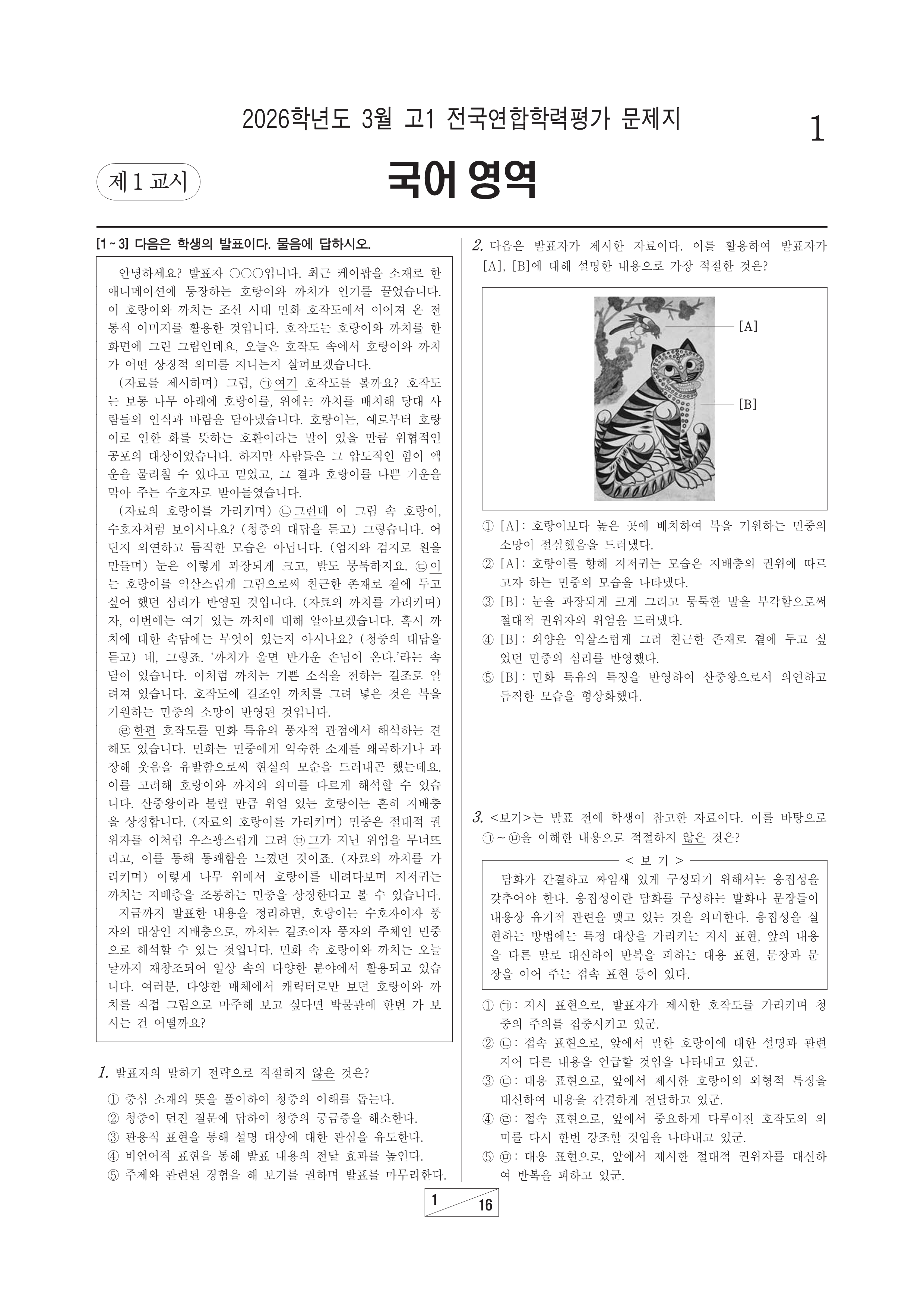 2026-03 고1 학평 한국사 2026학년도 3월 고1 전국연합학력평가 한국사시행 : 2026.03.24(화)대상 : 고등학교 1학년출제 : 서울교육청 고1/한국사 2026.03.25
