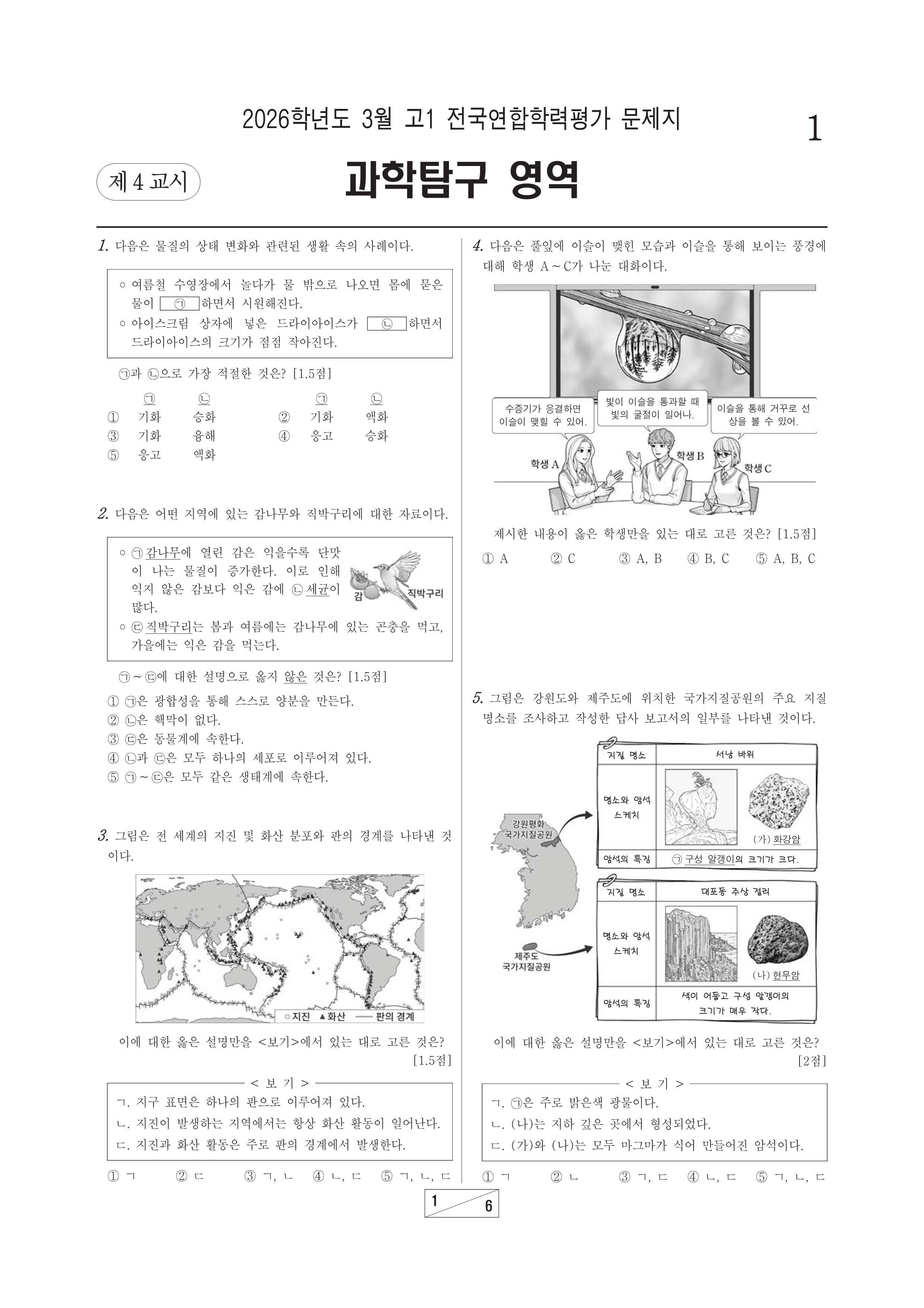 2026-03 고1 학평 과학 2026학년도 3월 고1 전국연합학력평가 과학시행 : 2026.03.24(화) 대상 : 고등학교 1학년출제 : 서울교육청 고1/과학 2026.03.25