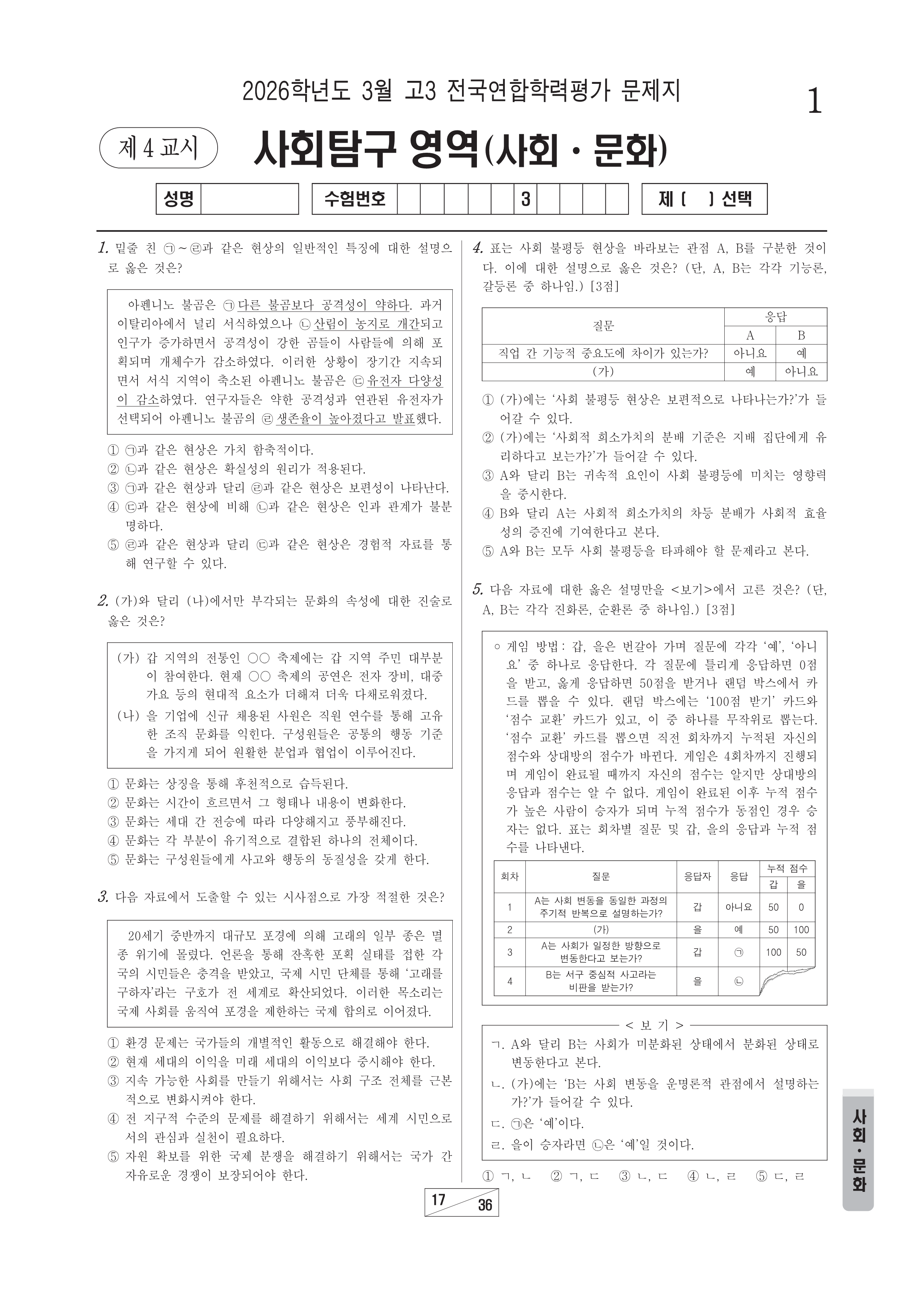 2026-03 고3 학평 사회(사회·문화) 2026학년도 3월 고3 전국연합학력평가 사회(사회·문화)시행 : 2026.03.24(화) 대상 : 고등학교 3학년출제 : 서울교육청 고3/사회 2026.03.24