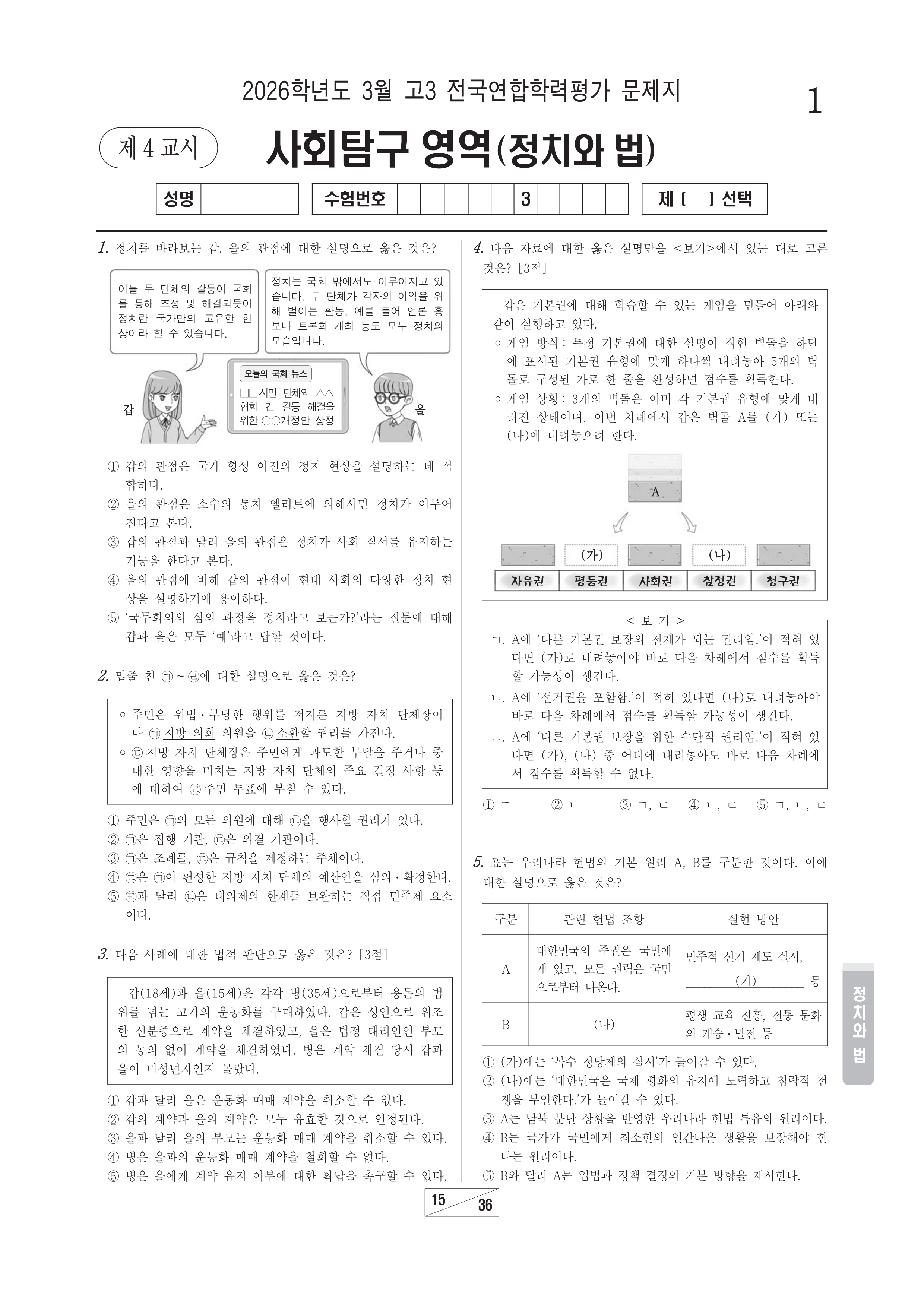 2026-03 고3 학평 사회(정치와 법) 2026학년도 3월 고3 전국연합학력평가 사회(정치와 법)시행 : 2026.03.24(화) 대상 : 고등학교 3학년출제 : 서울교육청 고3/사회 2026.03.24
