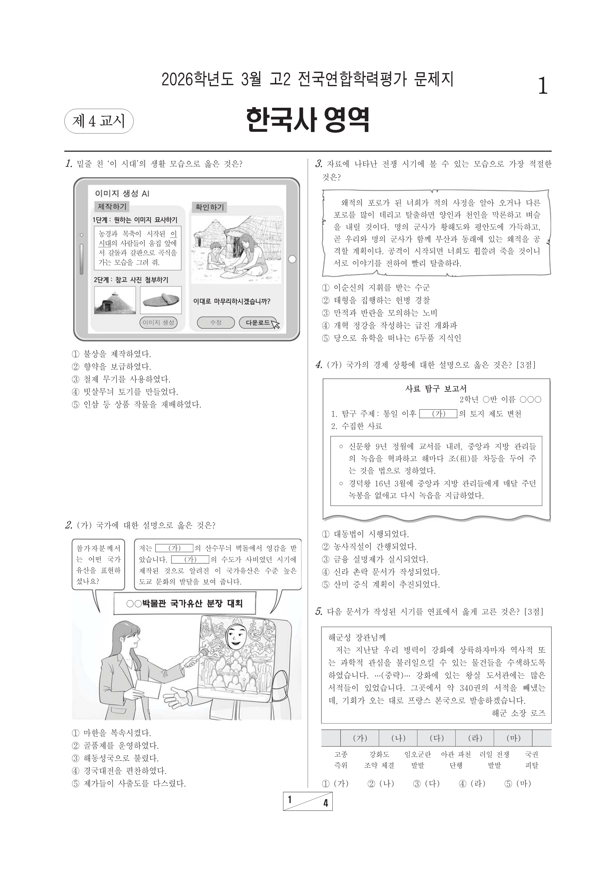 2026-03 고2 학평 한국사 2026학년도 3월 고2 전국연합학력평가 한국사시행 : 2026.03.24(화) 대상 : 고등학교 2학년출제 : 서울교육청 고2/한국사 2026.03.25