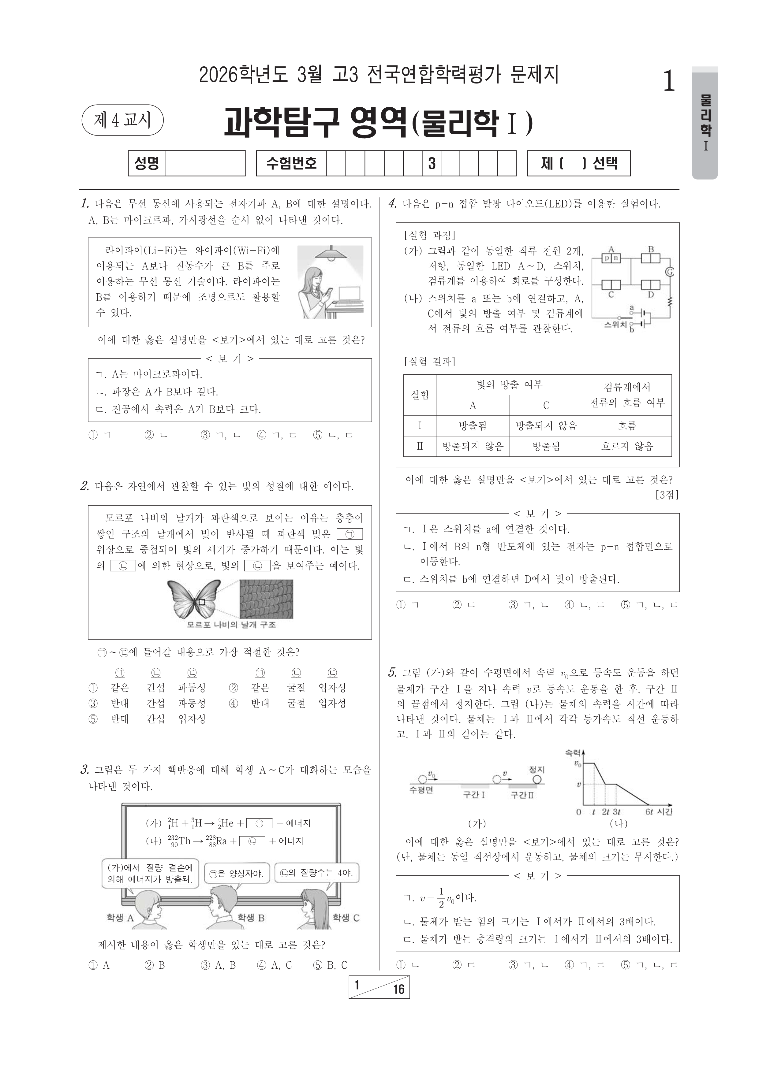 2026-03 고3 학평 과학(물리학Ⅰ) 2026학년도 3월 고3 전국연합학력평가 과학(물리학Ⅰ)시행 : 2026.03.24(화) 대상 : 고등학교 3학년출제 : 서울교육청 고3/과학 2026.03.24