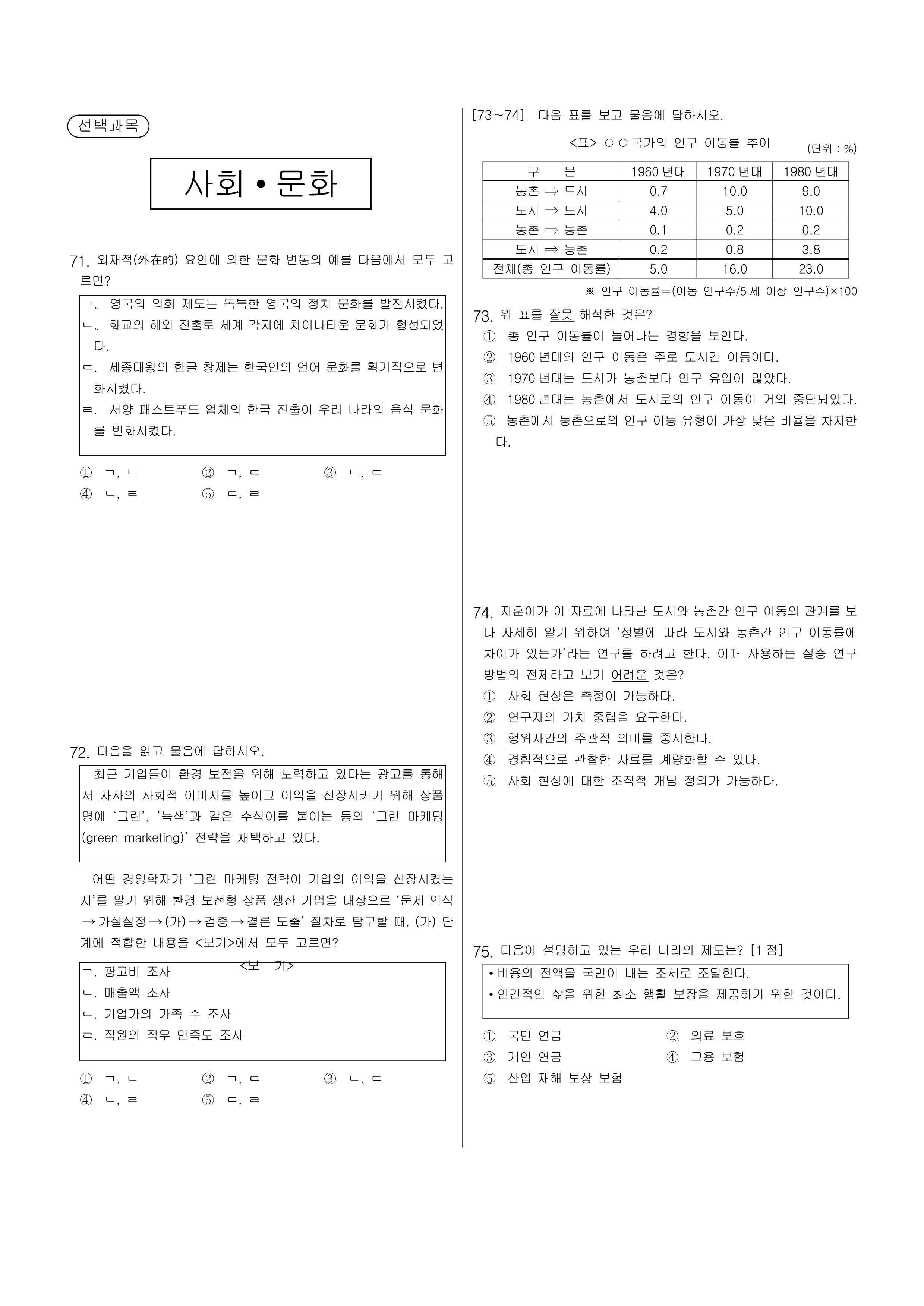 71. 외재적(外在的) 요인에 의한 문화 변동의 예를 다음에서 모두 고르면?