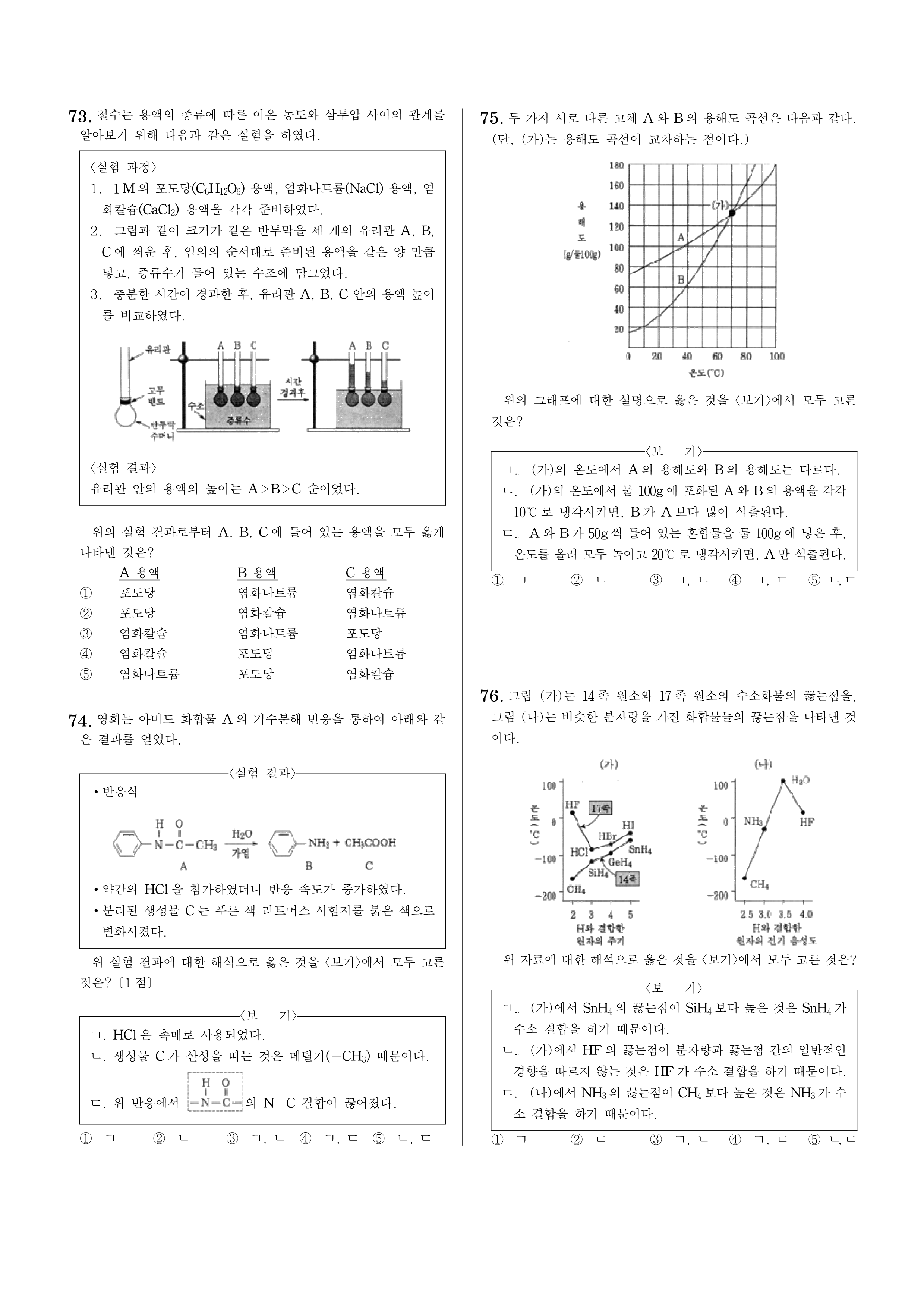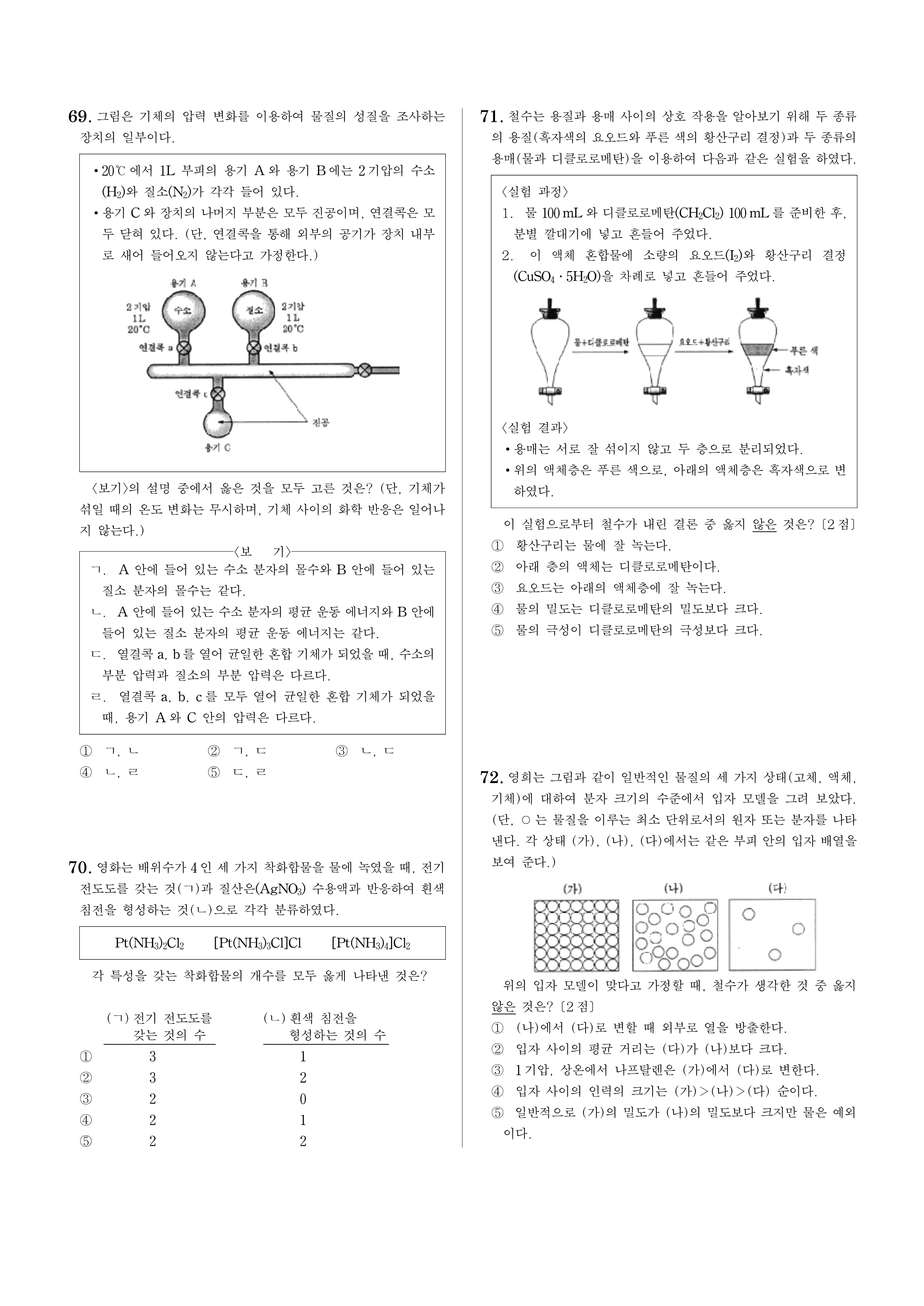 2001학년도 대학수학능력시험 과학(자연계선택/화학Ⅱ)