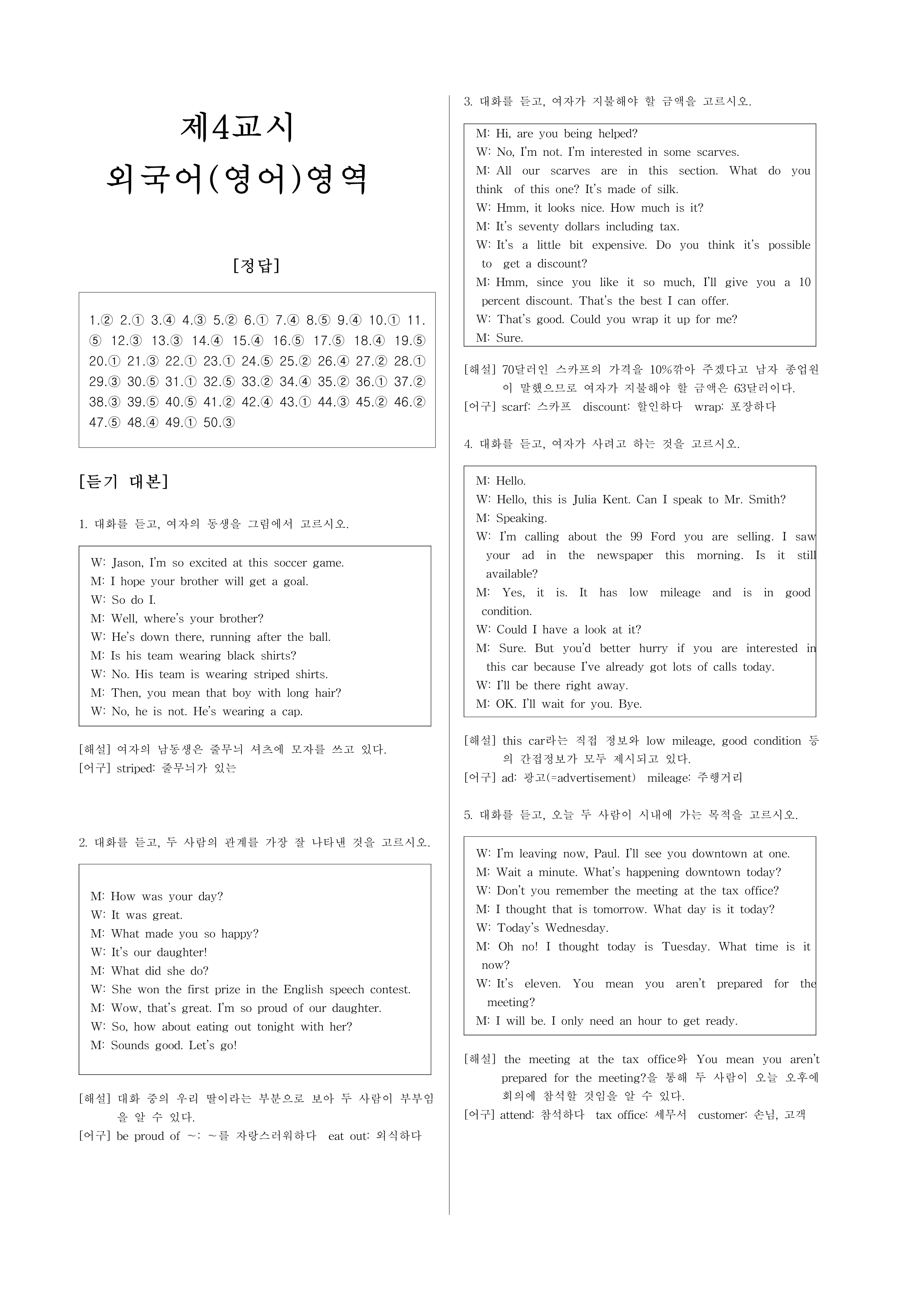 3. 대화를 듣고, 여자가 지불해야 할 금액을 고르시오.