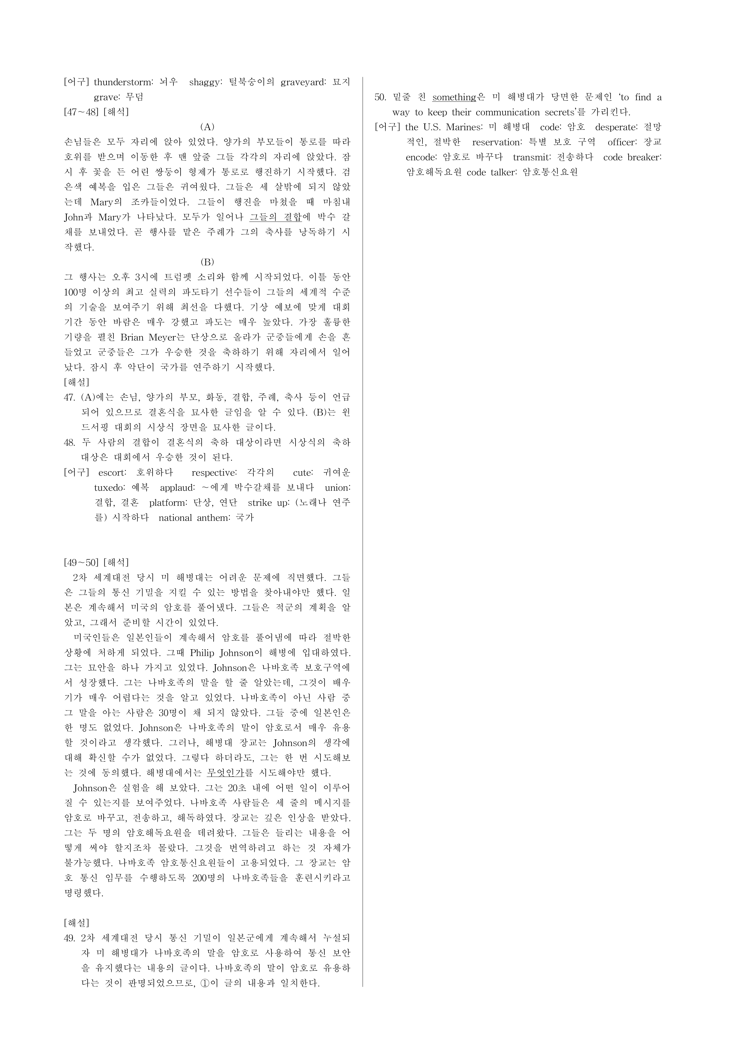 48. 윗글 (A)의 밑줄 친 their union에 상응하는 것을 (B)에서 찾을 때, 가장 적절한 것은?