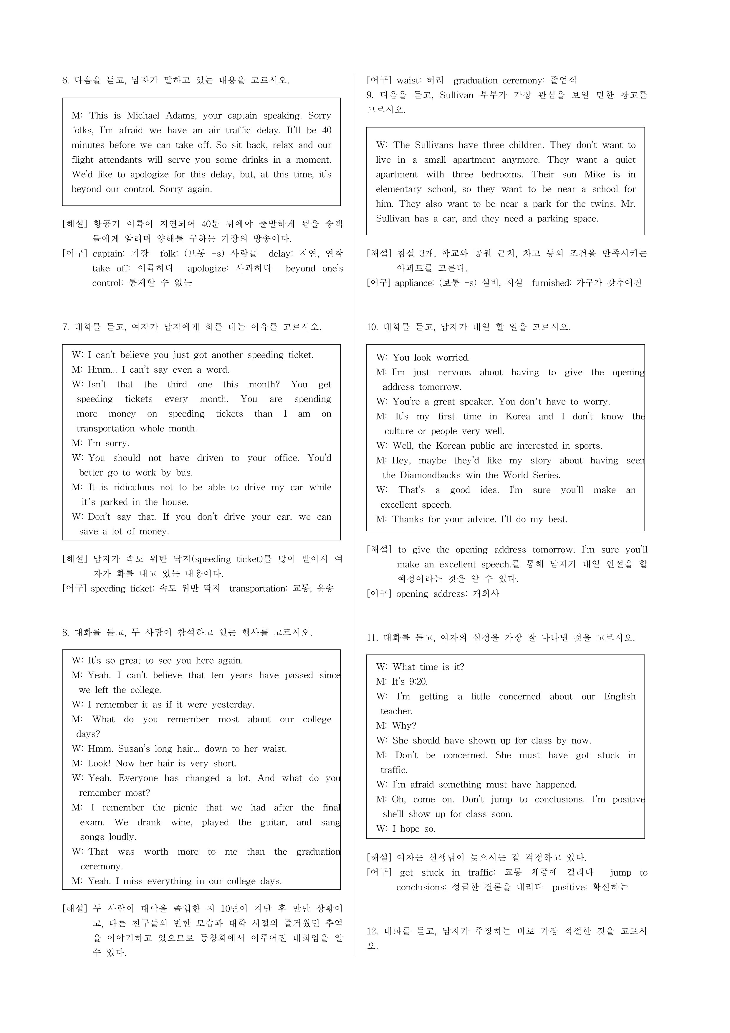 6. 다음을 듣고, 남자가 말하고 있는 내용을 고르시오. [2점]