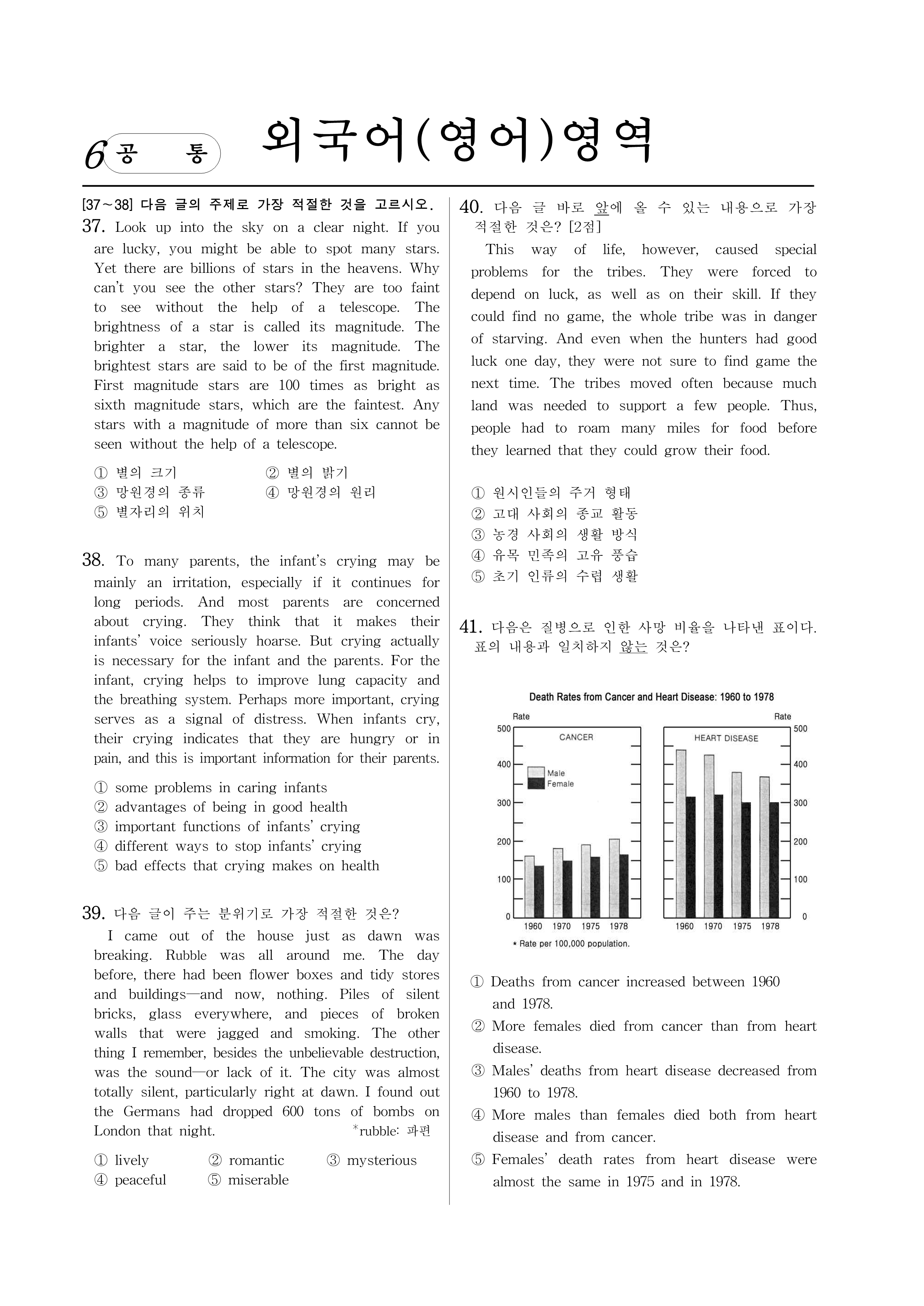 41. 다음은 질병으로 인한 사망 비율을 나타낸 표이다. 표의 내용과 일치하지 않는 것은?