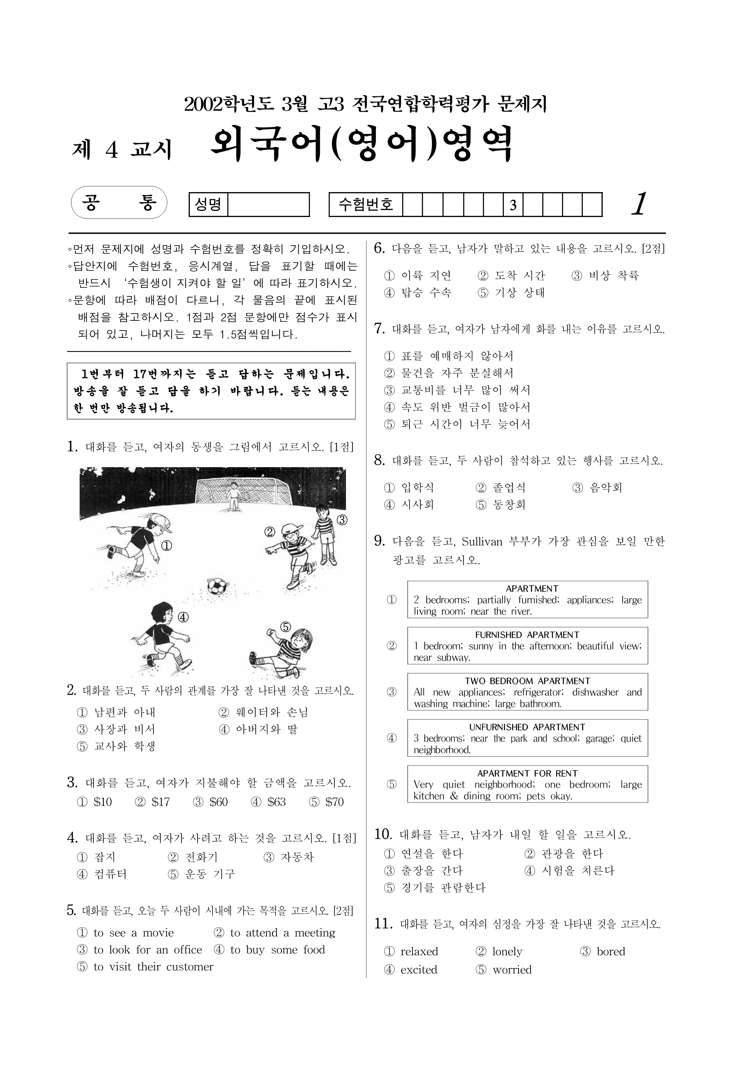 2002학년도 3월 고3 전국연합학력평가 영어