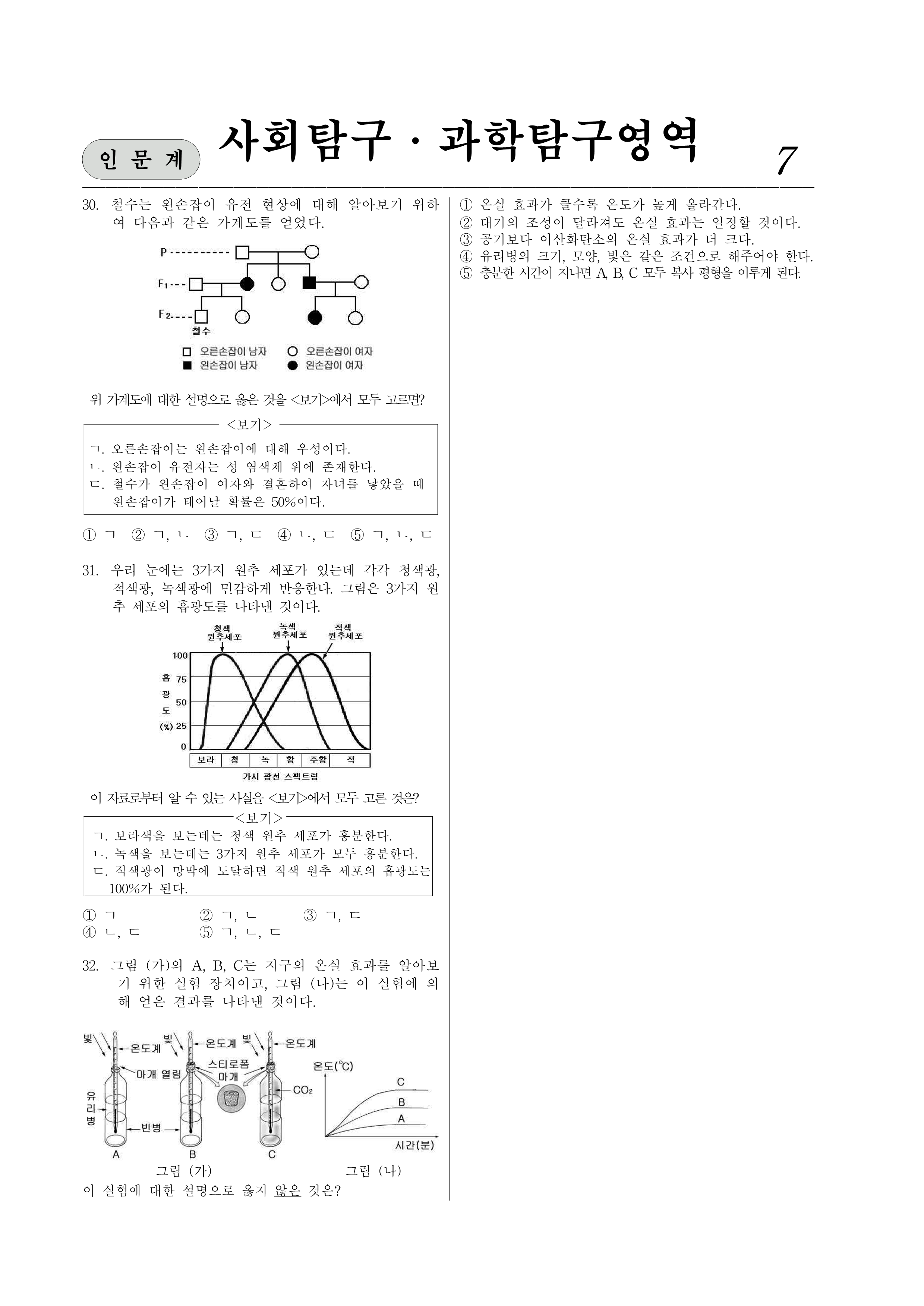 2002학년도 3월 고3 전국연합학력평가 과학(인문계)