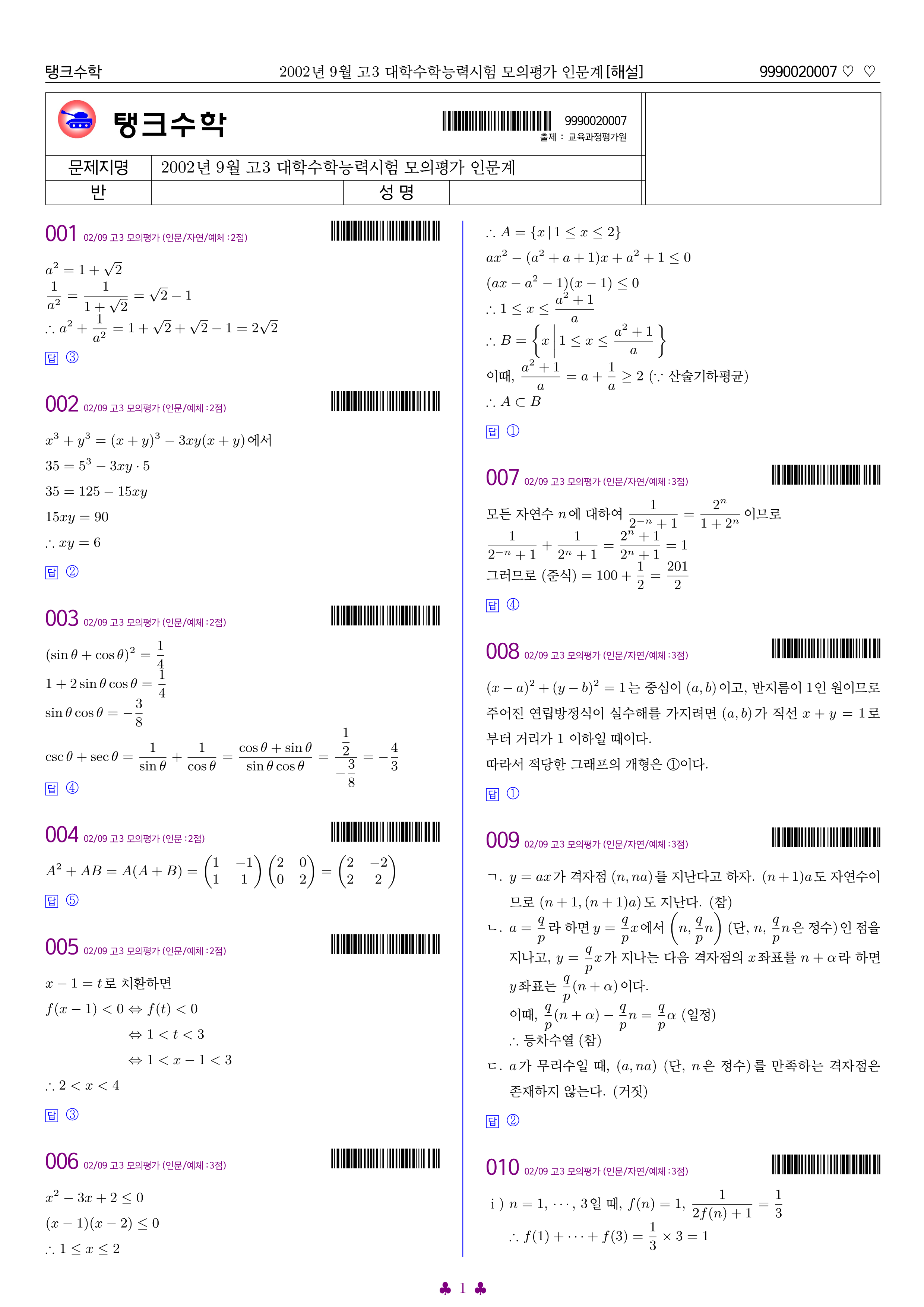 2002-09 고3 모평 2수학(인문계)[정답].pdf