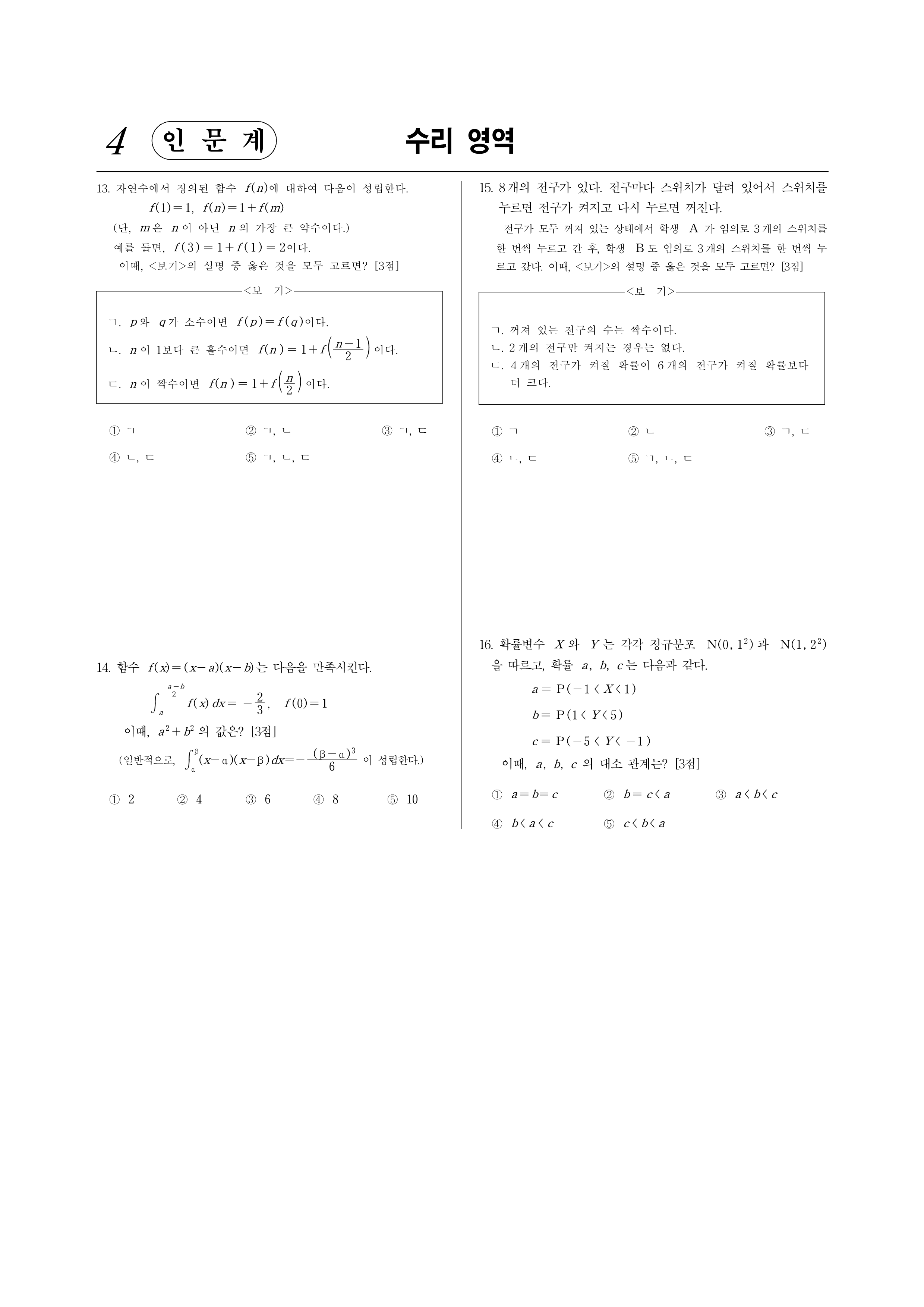 2003학년도 대학수학능력시험 모의평가 수학(인문계)