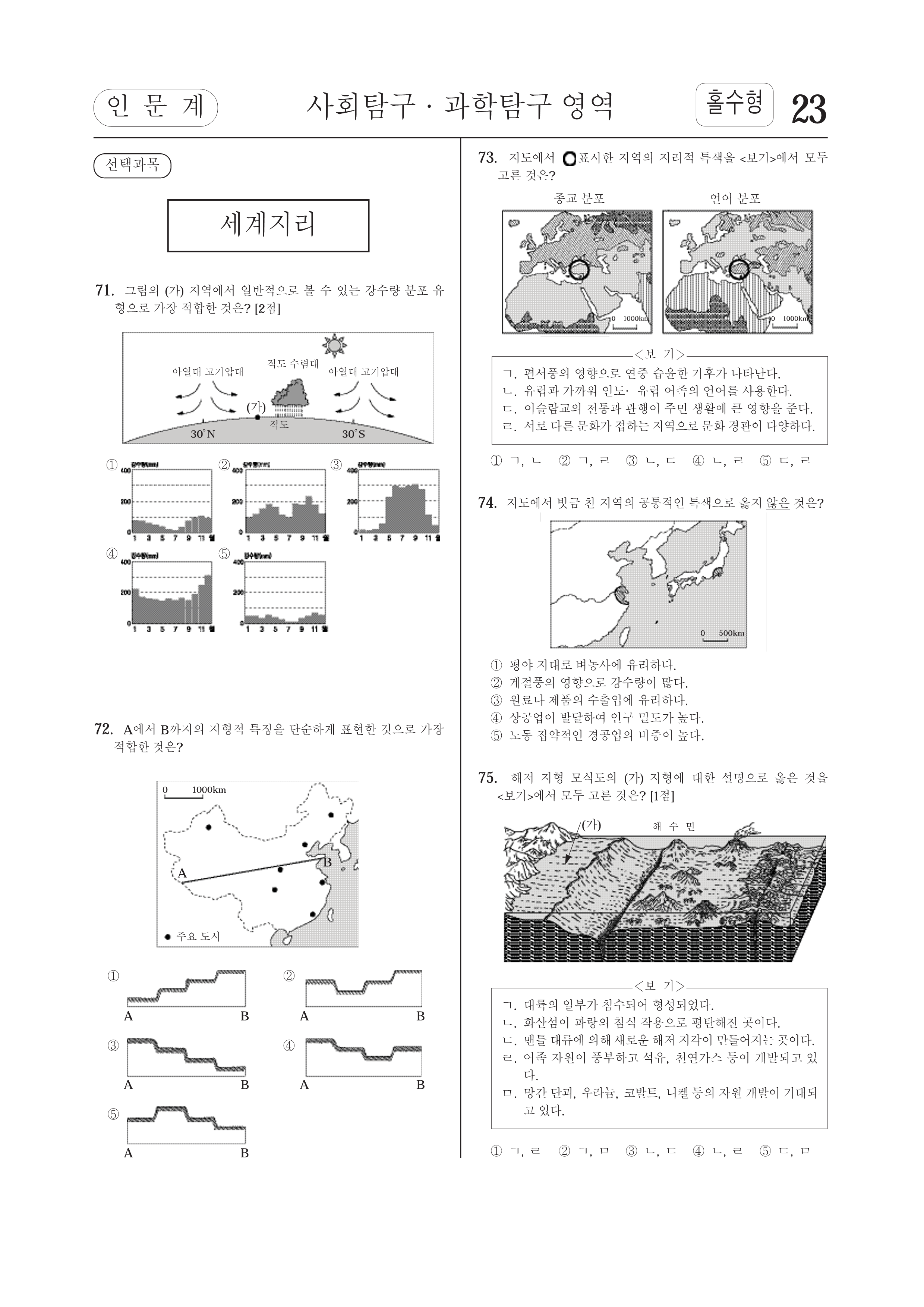 2003학년도 대학수학능력시험 사회(인문계선택/세계지리)