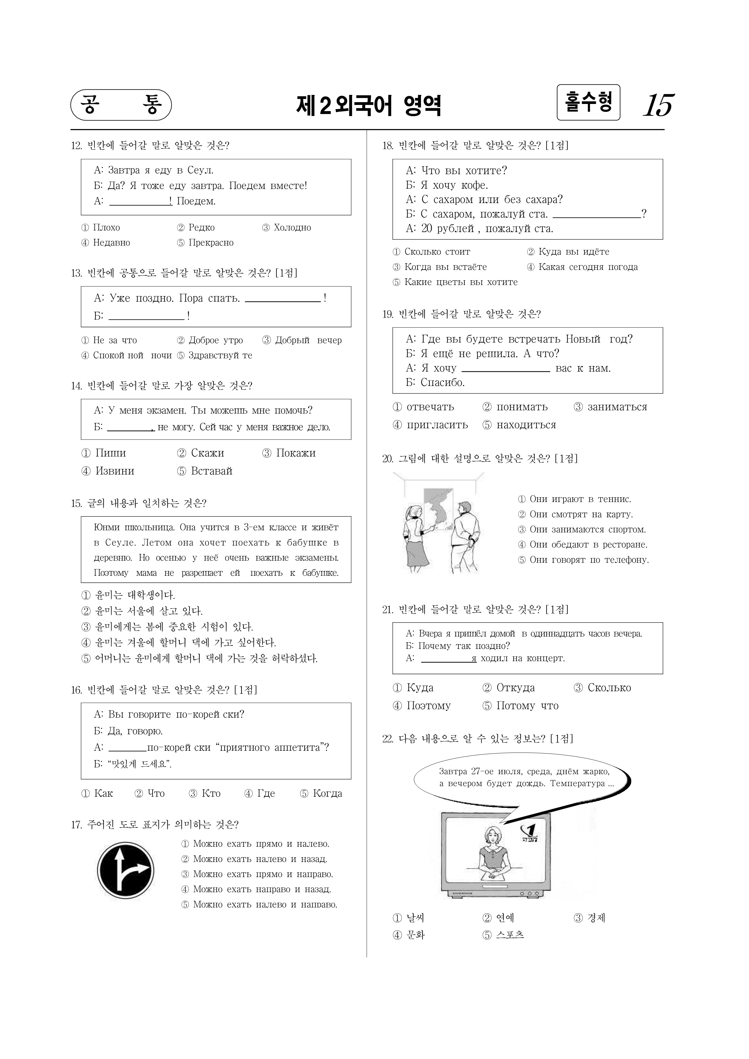 2003학년도 대학수학능력시험 제2외국어(러시아어Ⅰ)