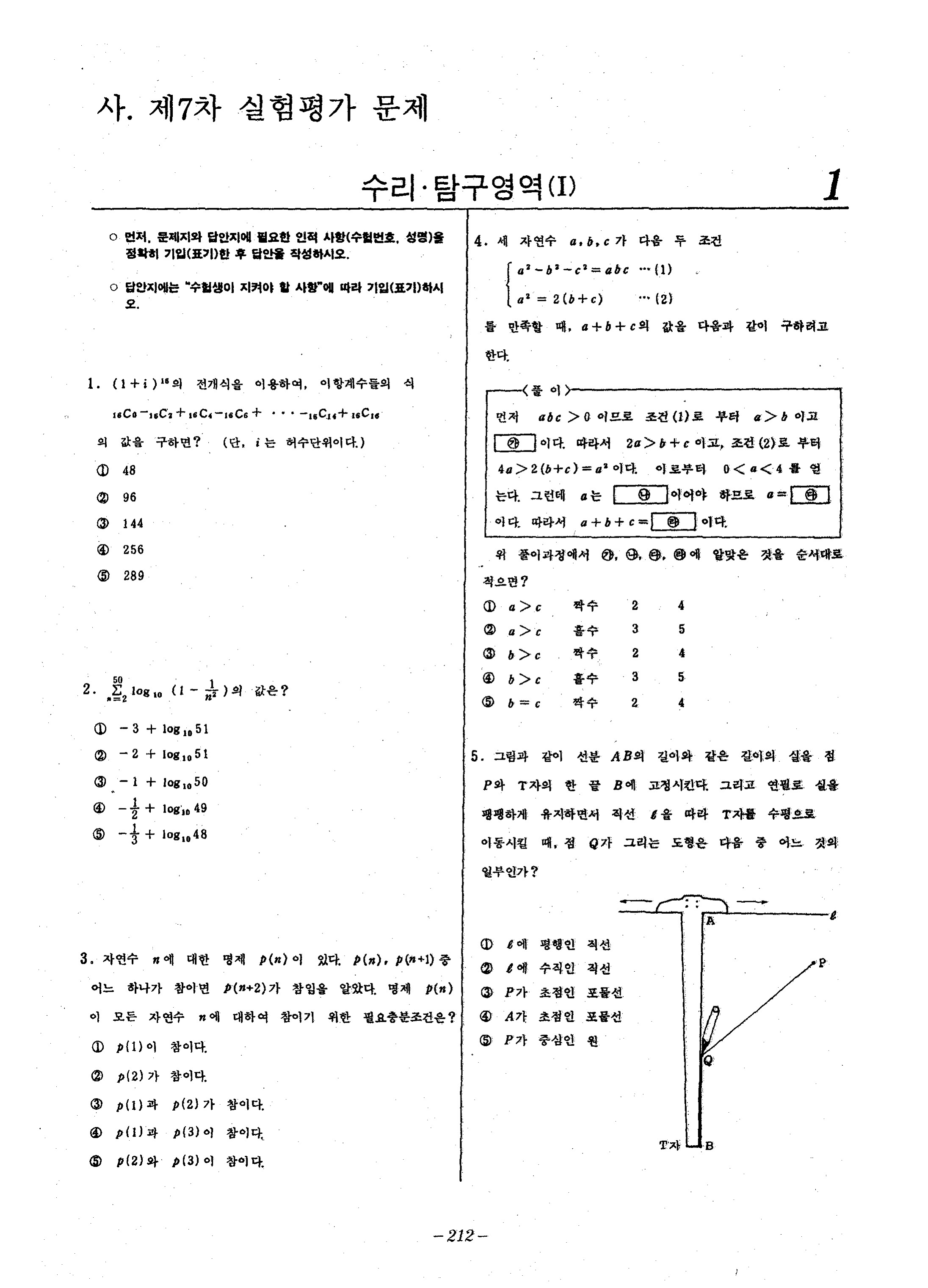 대학수학능력시험 7차 실험평가 수학