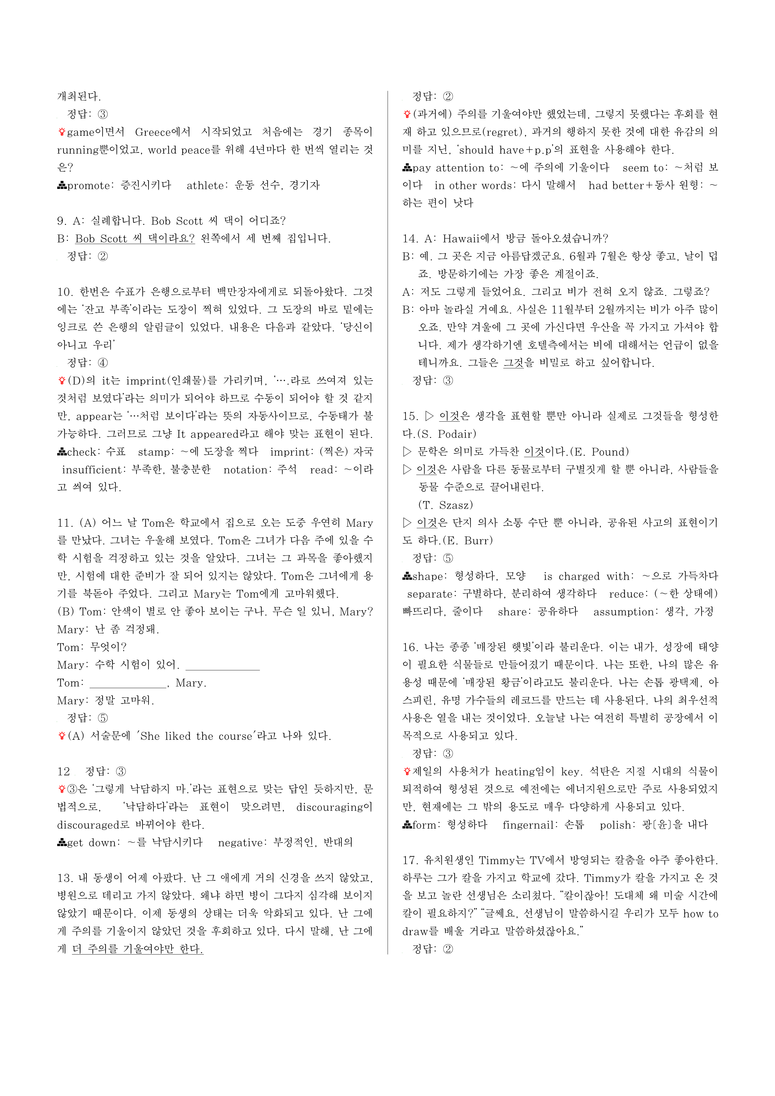 이제 듣기 문제는 다 끝났습니다. 9번 문제부터는 문제지의 지시에 따라 답을 하기 바랍니다.