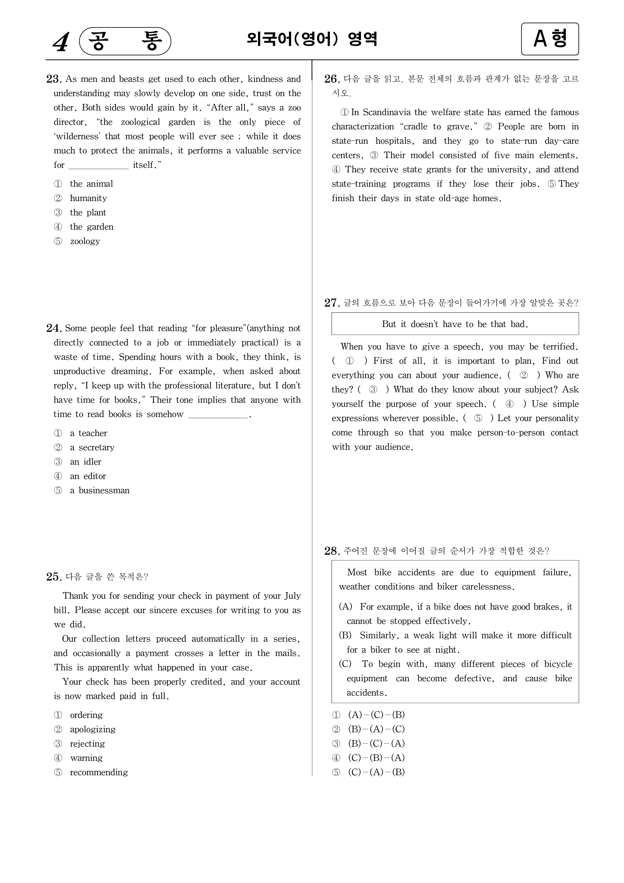 1994학년도 제1차 대학수학능력시험 영어