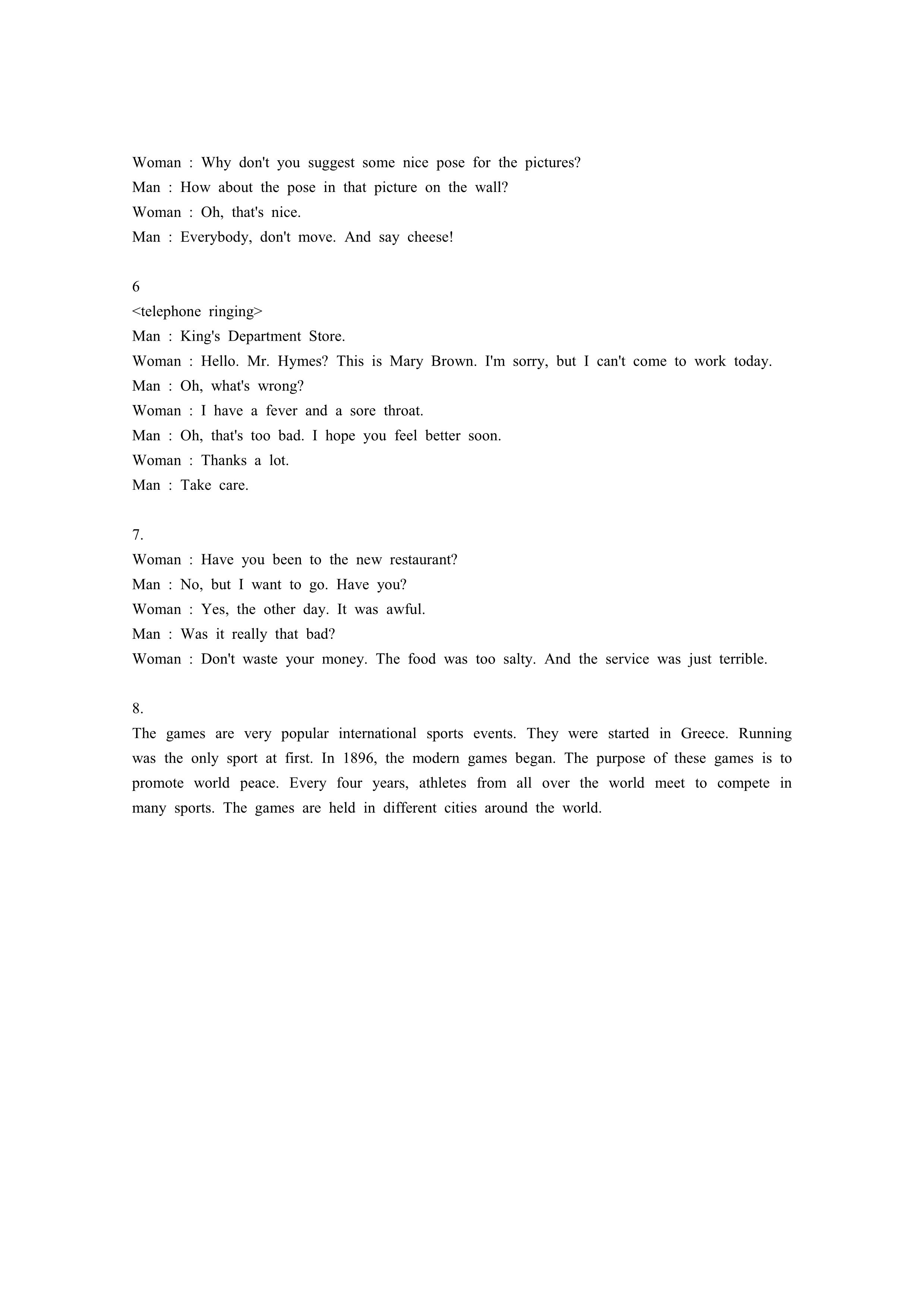 1번부터 8번까지는 듣고 답하는 문제입니다. 문제지를 보고 방송을 잘 듣으면서 답을 하기 바랍니다. 듣는 내용은 한 번만 들려 드립니다.