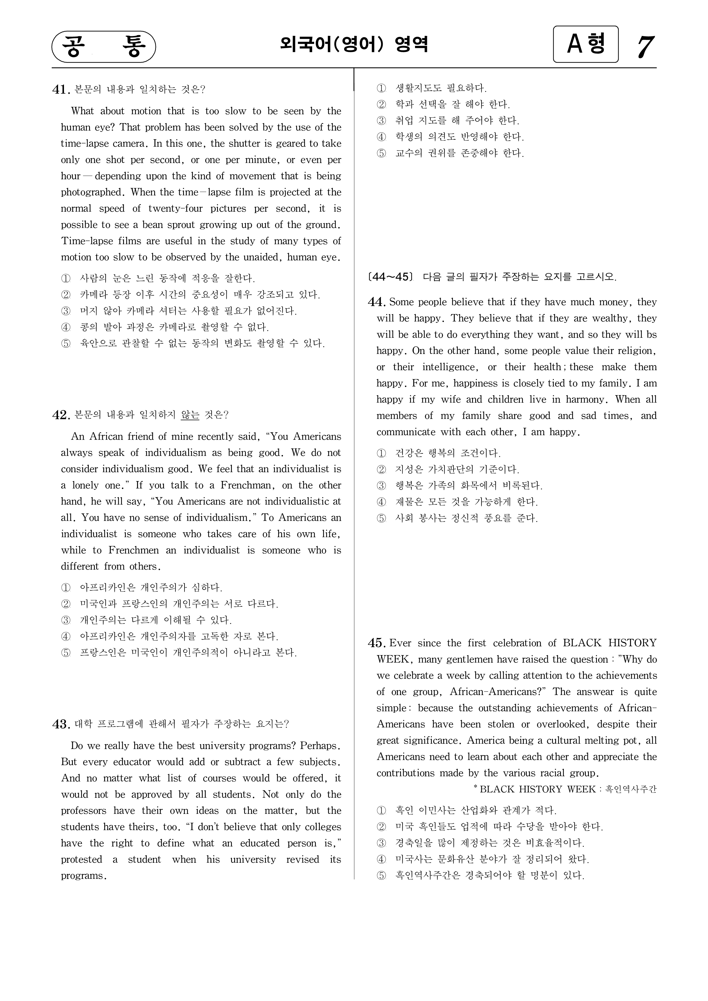 [44~45] 다음 글의 필자가 주장하는 요지를 고르시오.