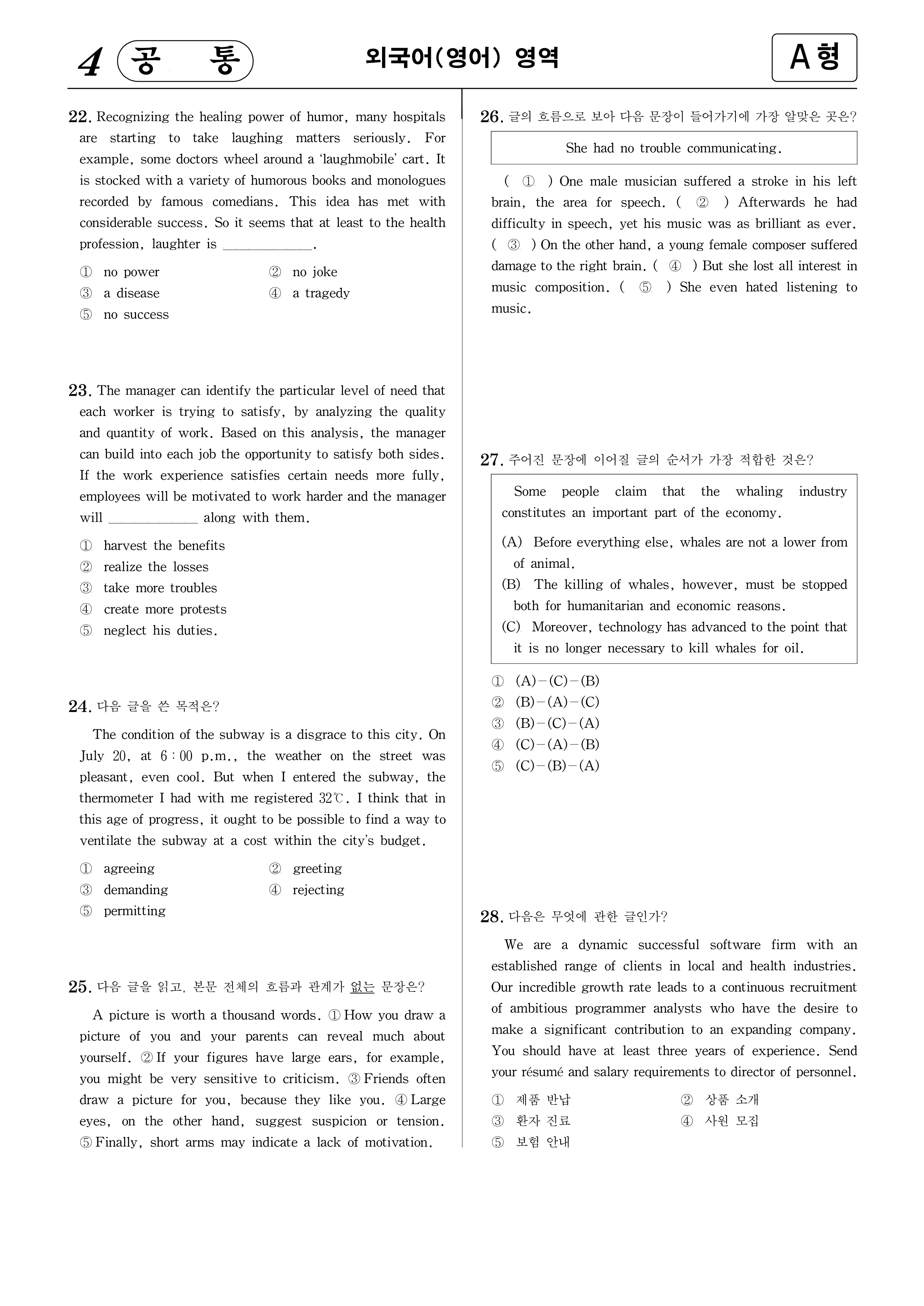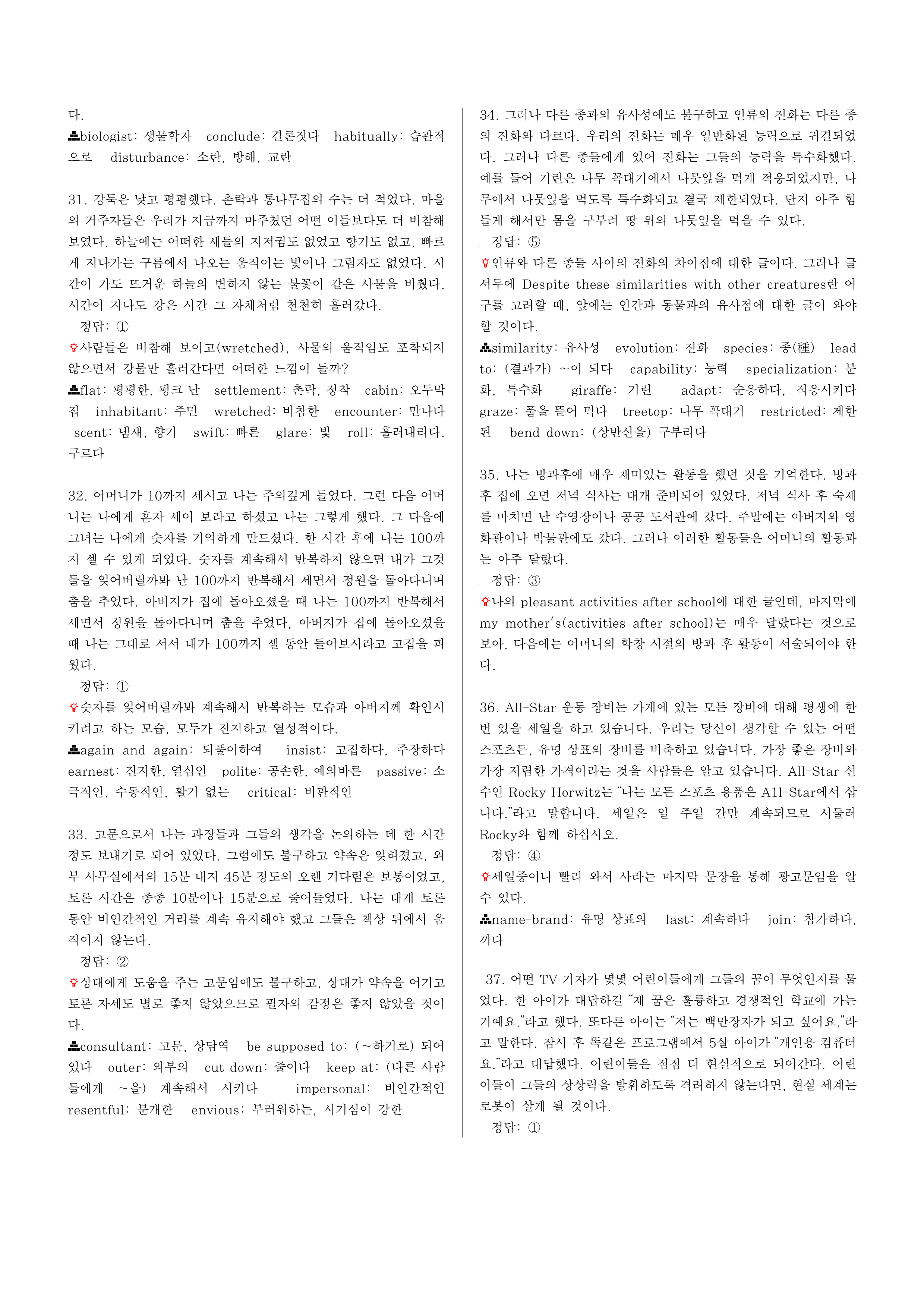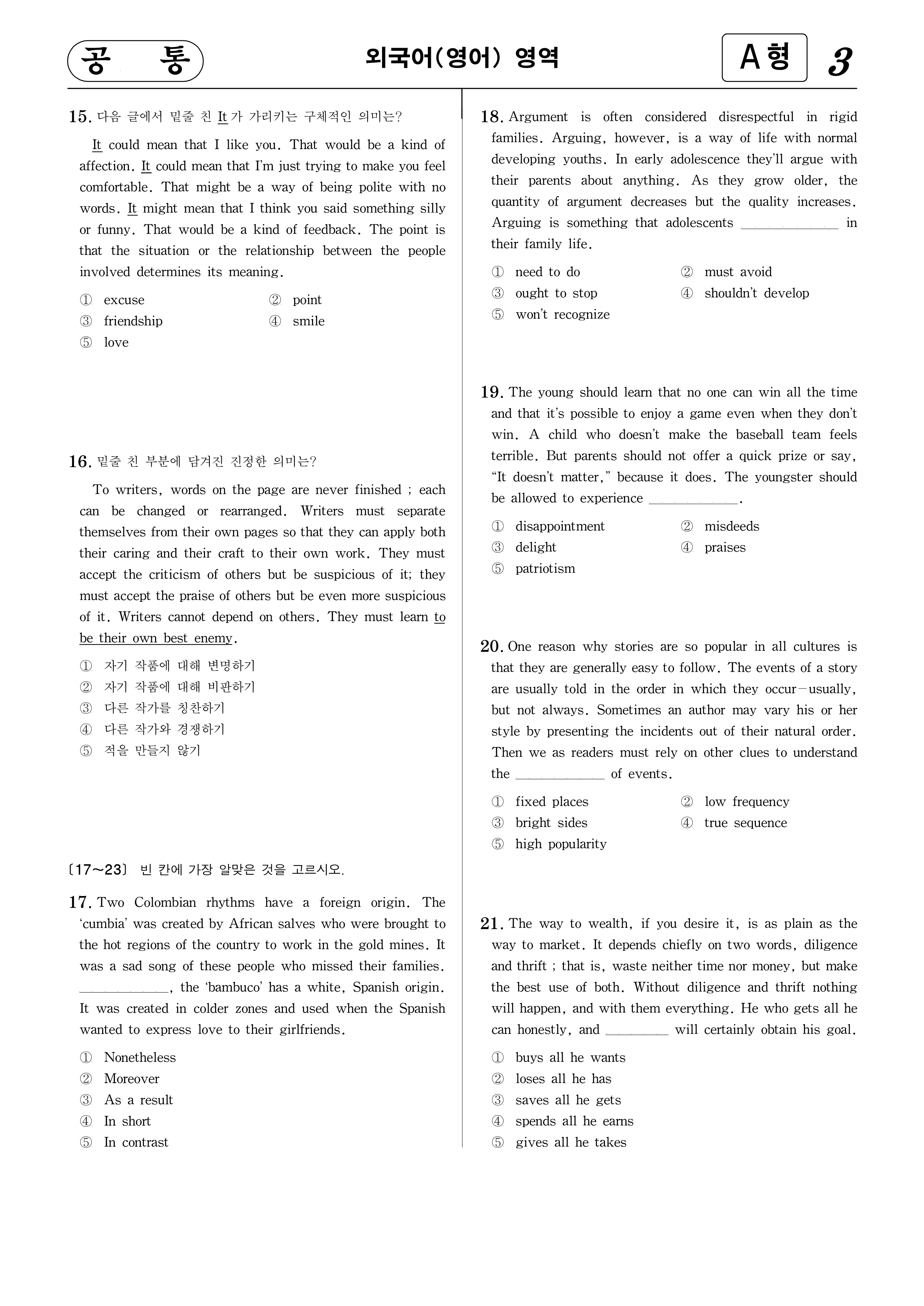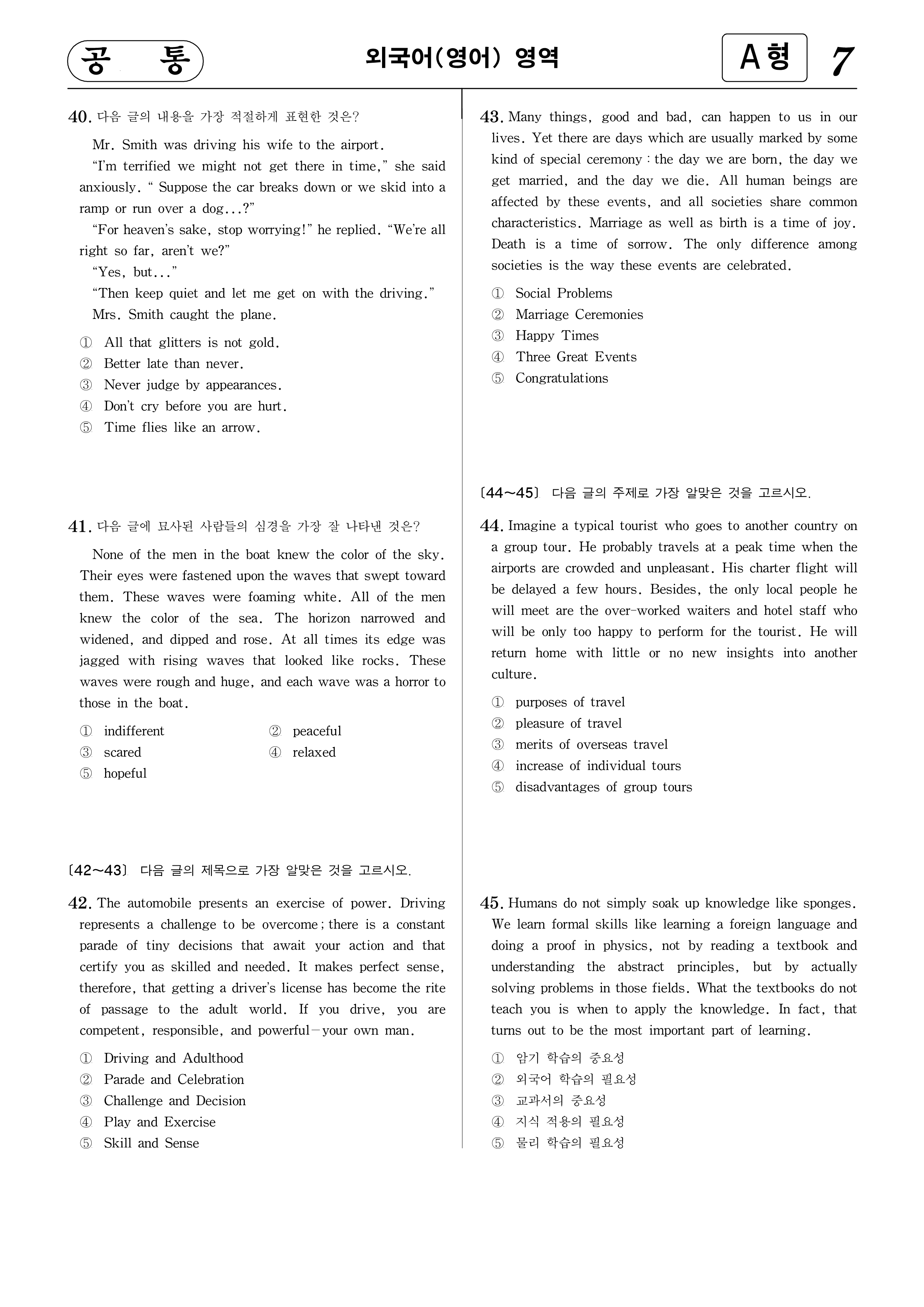 이제 듣기 문제는 다 끝났습니다. 9번 문제부터는 문제지의 지시에 따라 답을 하기 바랍니다.