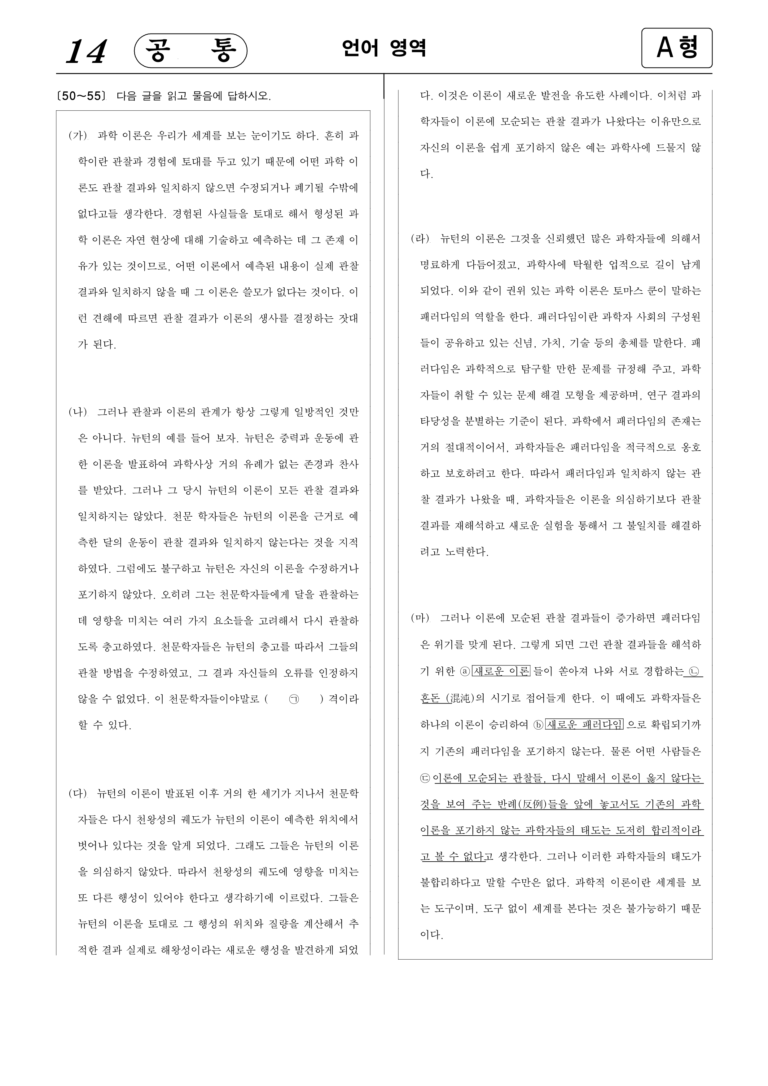 [50~55] 다음 글을 읽고 물음에 답하시오.