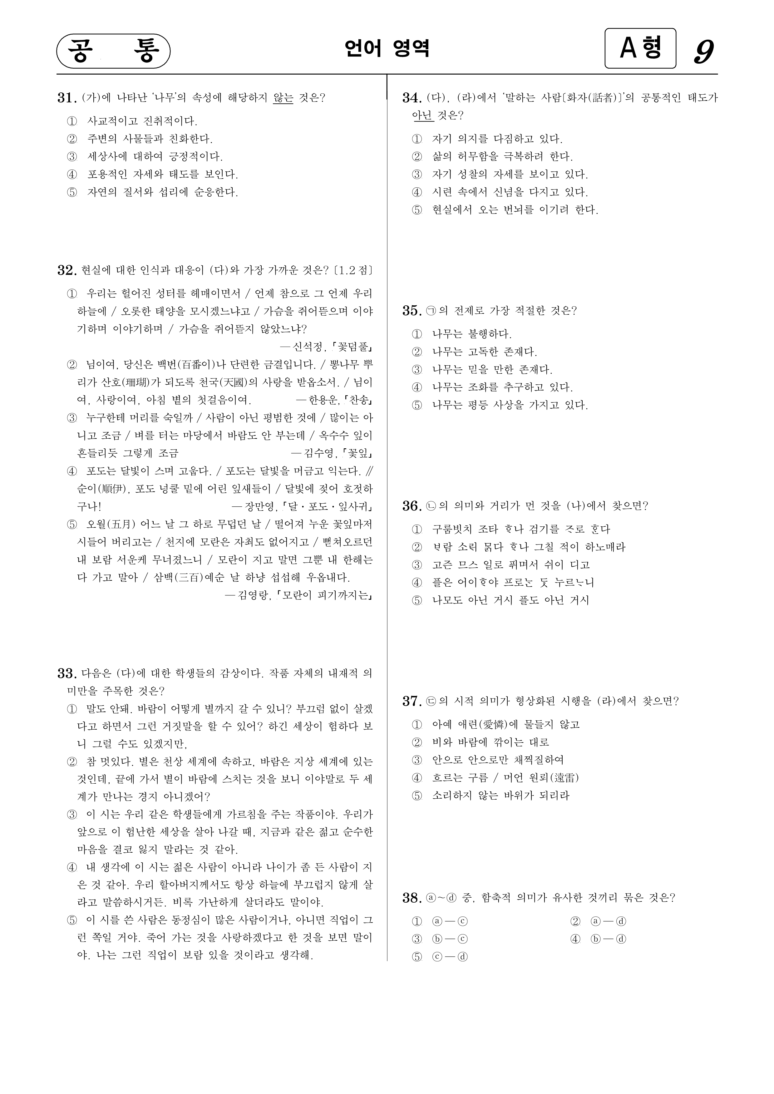 1995학년도 대학수학능력시험 국어