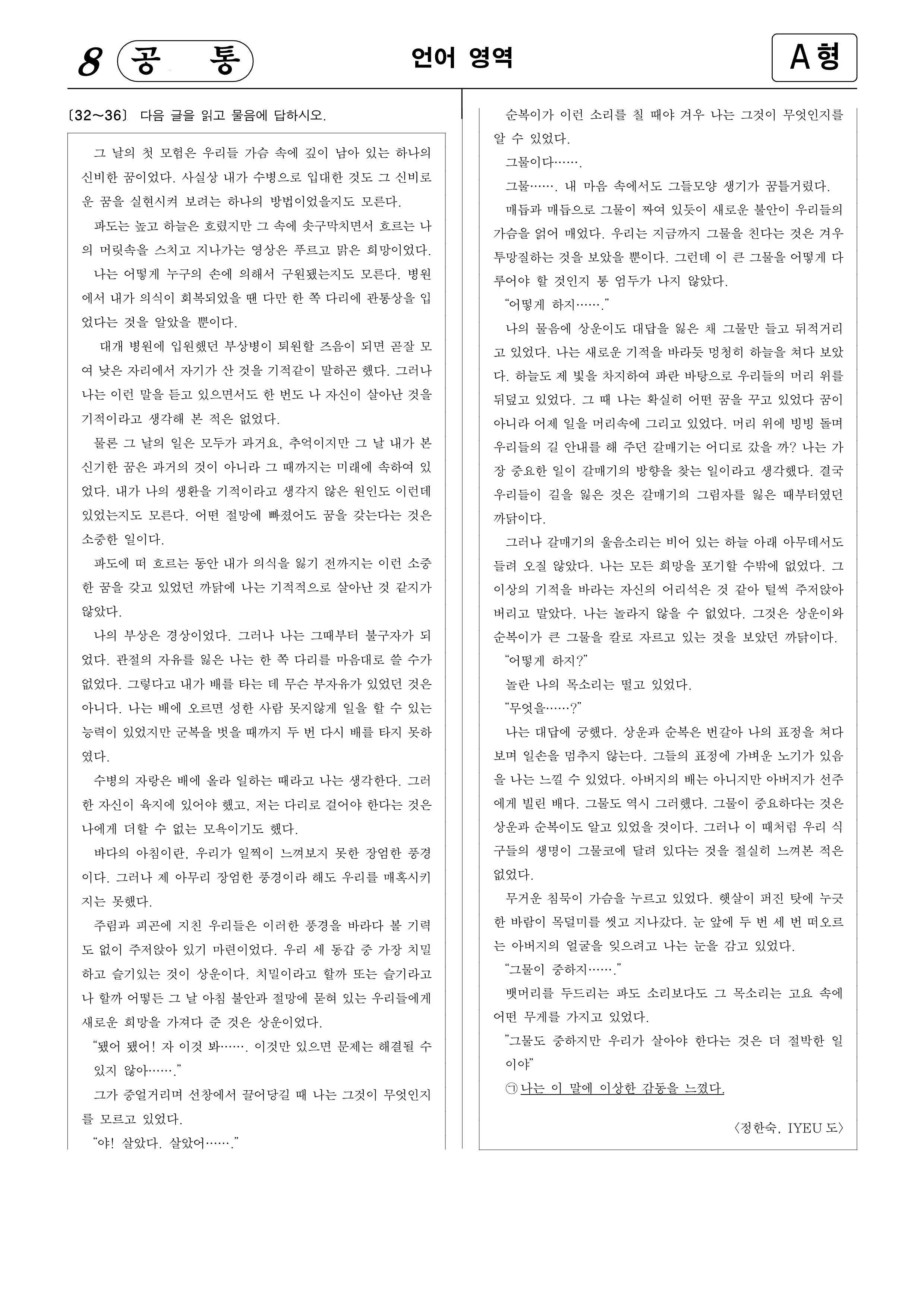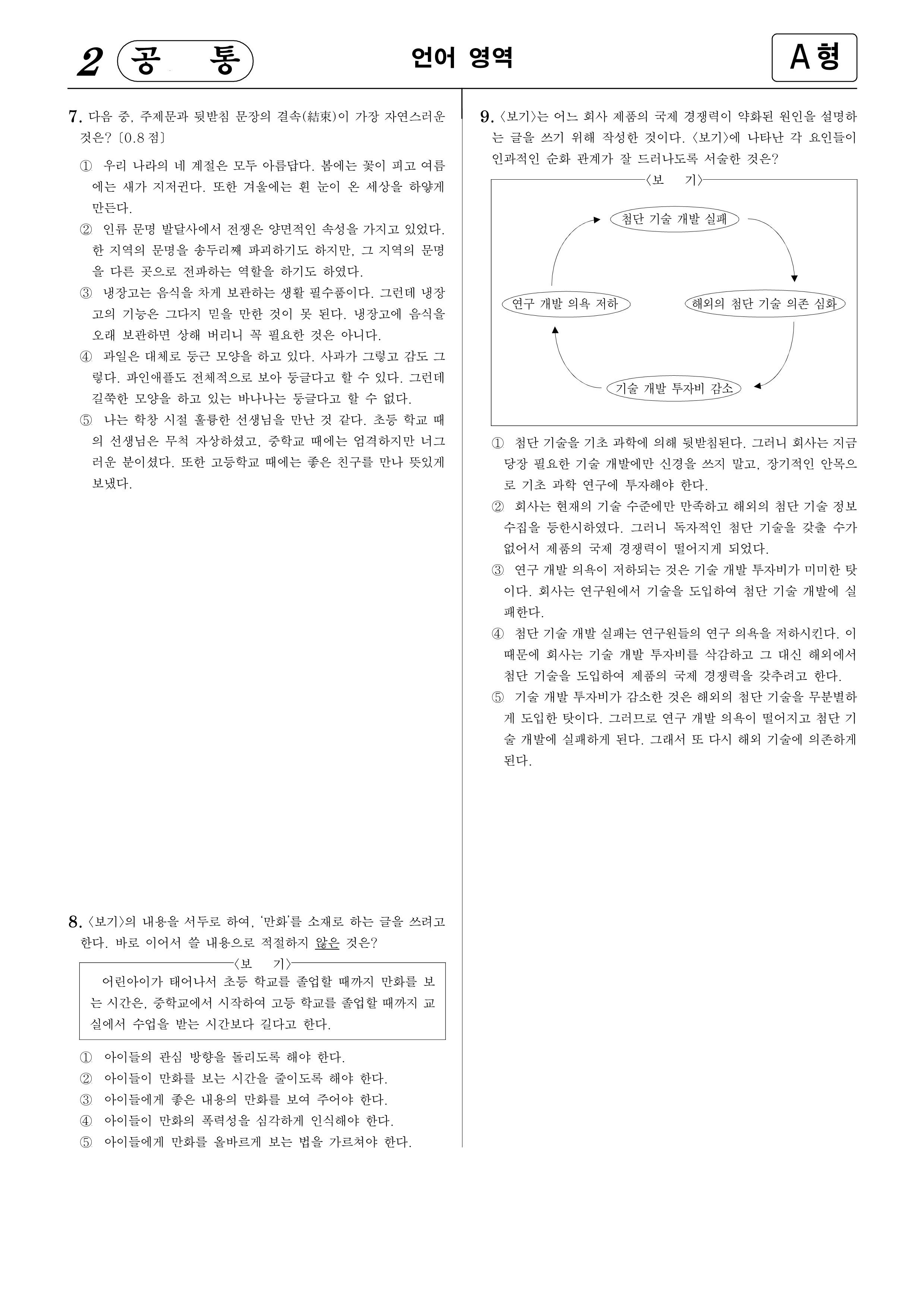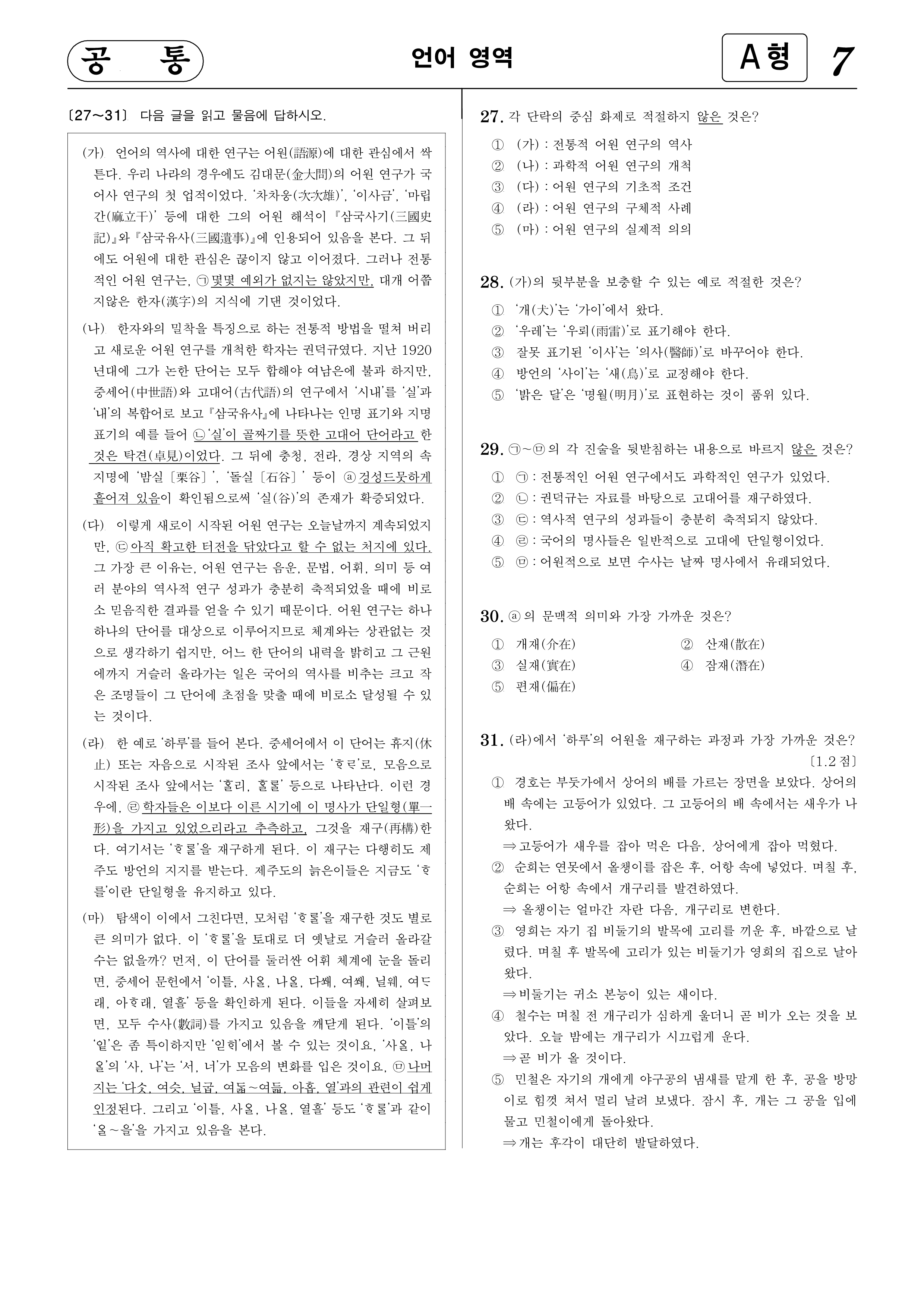 이제 듣기 문제는 다 끝났습니다. 7번 문제부터는 문제지의 지시에 따라 답을 하기 바랍니다.