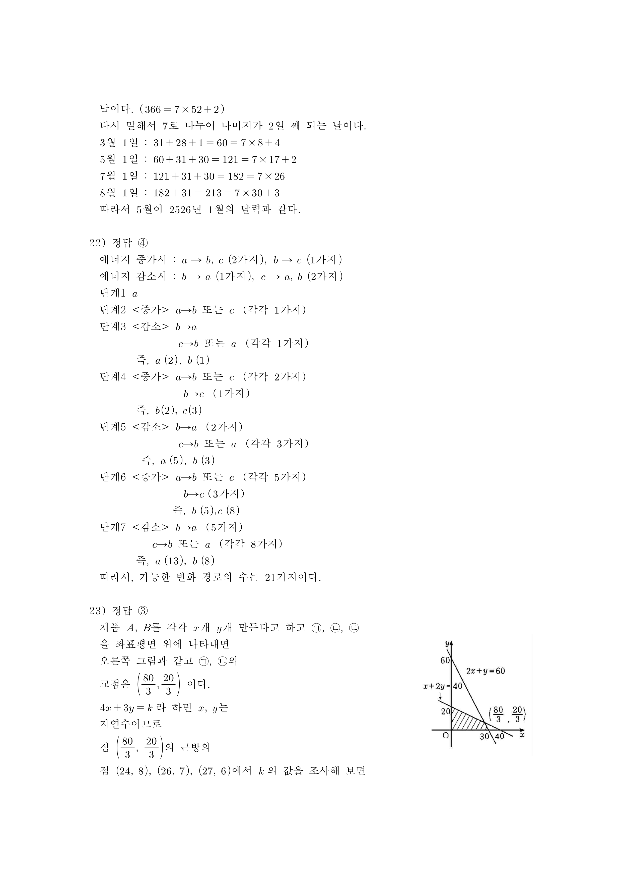 21. 2525년 여름쯤 2526년 $1$월의 계획을 세우려고 하는데, 그해(2525년) $1$월부터 $12$월까지의 달력은 있으나 새해(2526년) $1$월의 달력이 없다. 이 때, 2526년 $1$월의 달력과 요일 및 날짜가 같게 구성된 달을 2525년의 달력 중에서 찾으면?